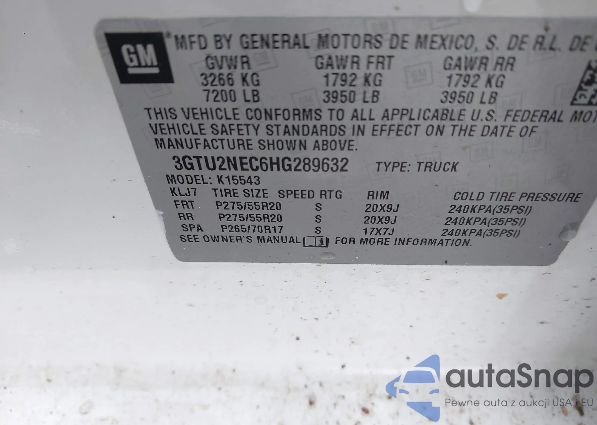 LOT: 43388836 VIN: 1GCCS19X038226929