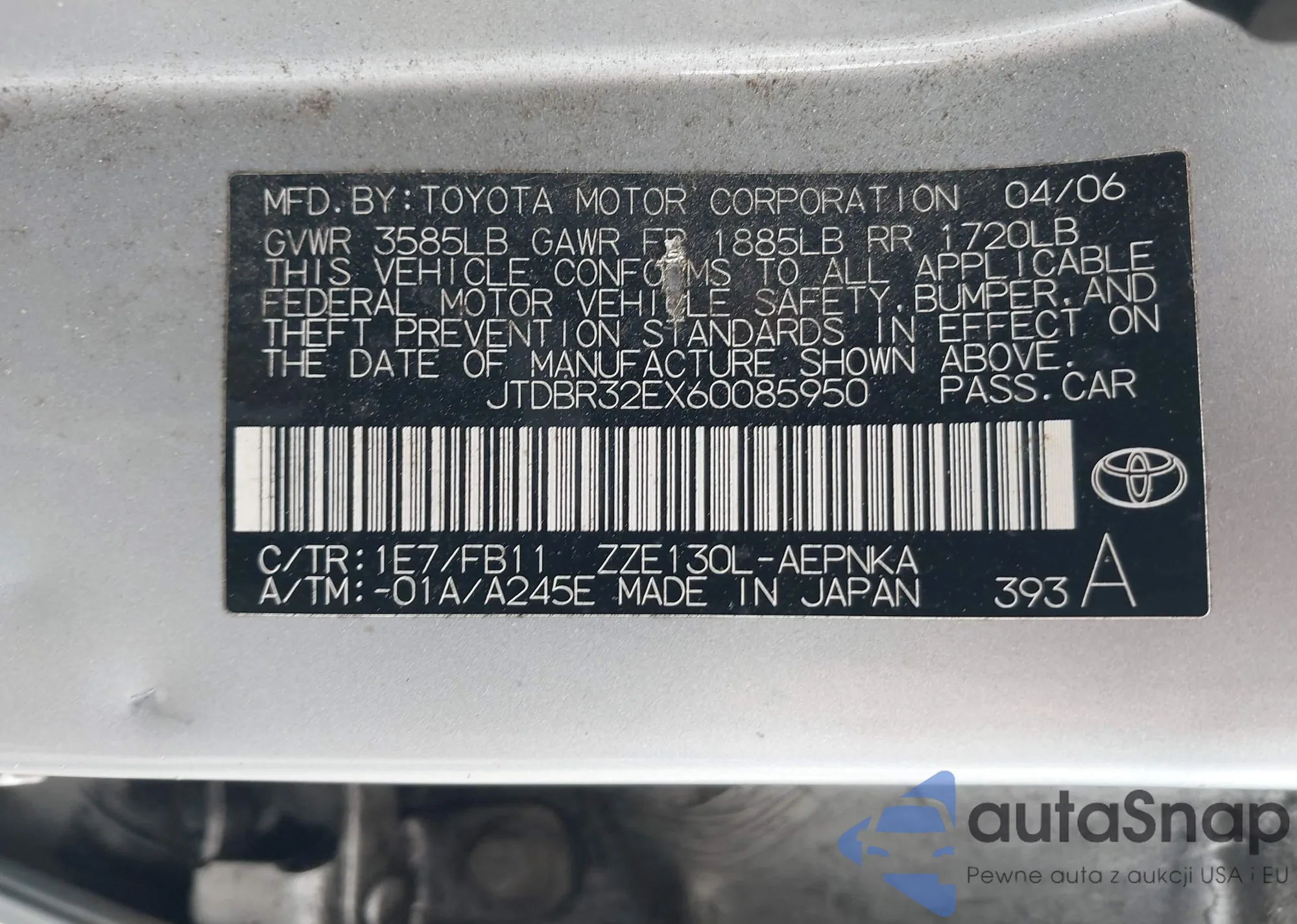 LOT: 43558472 VIN: JTDBR32EX60085950
