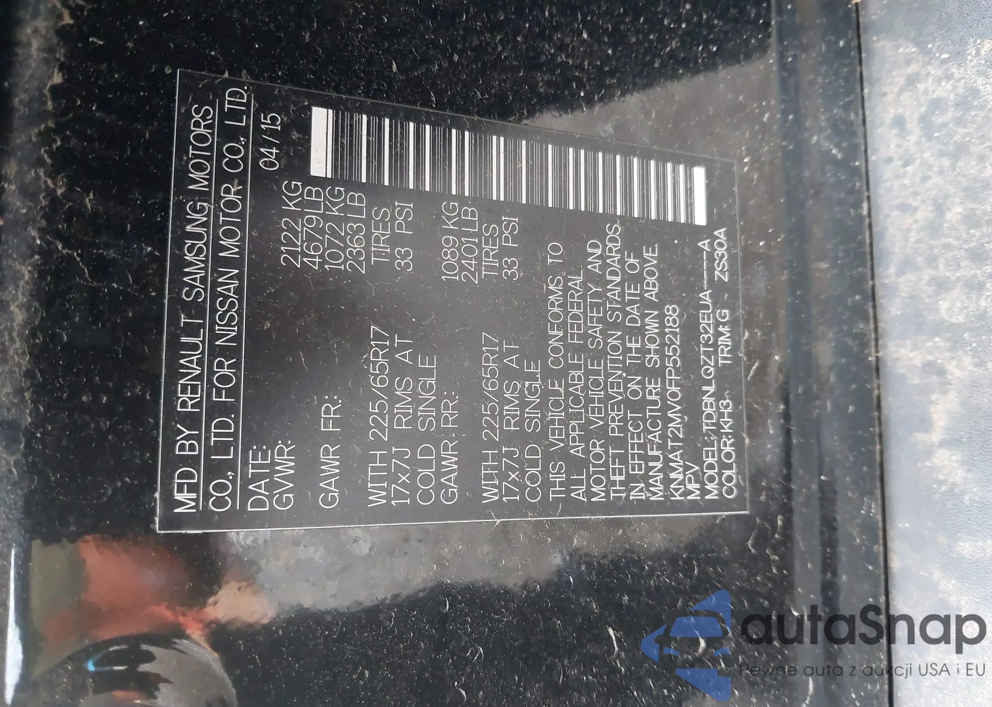 • VIN KM8K1CAA6LU504950
