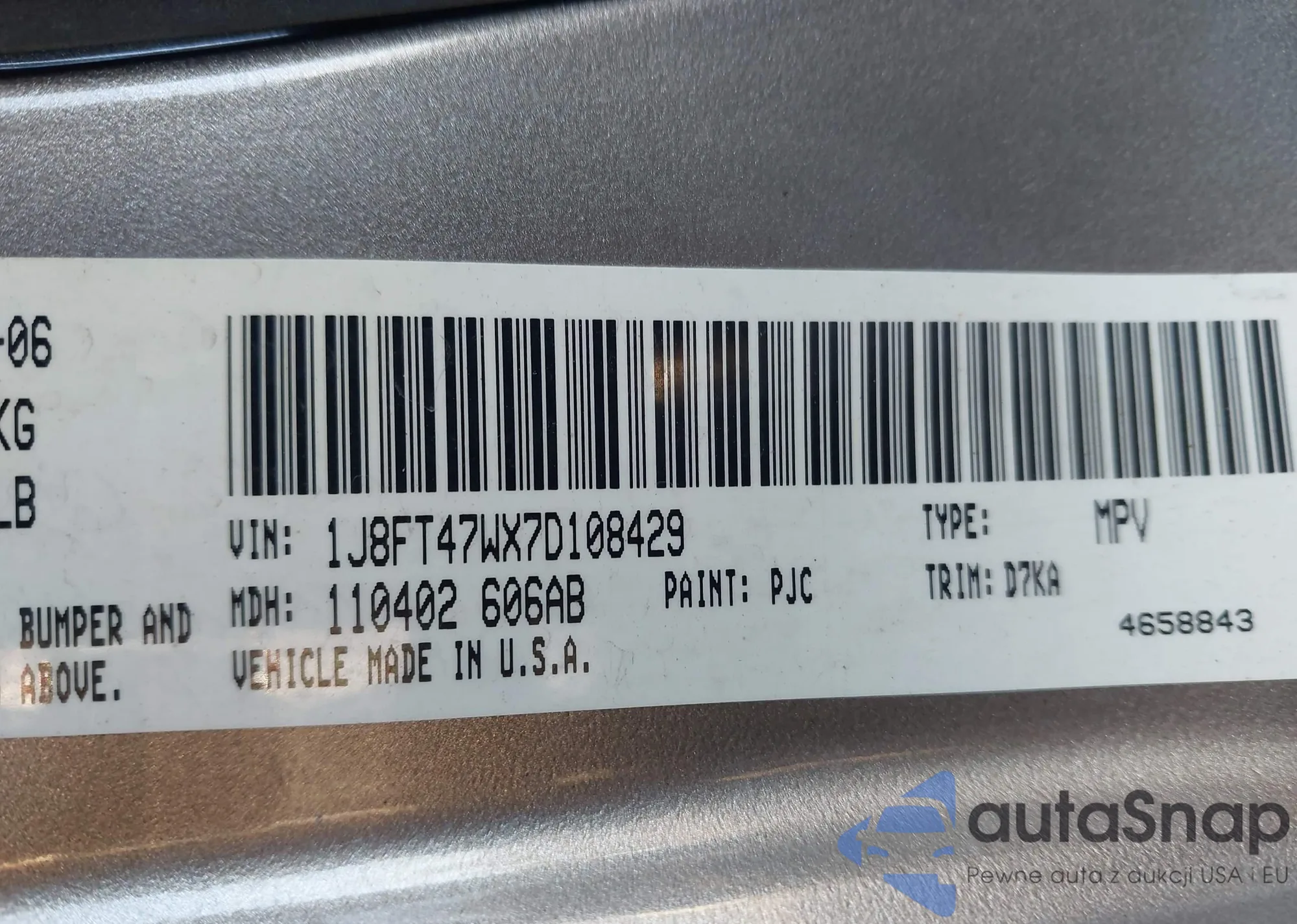 • VIN 1J8FT47WX7D108429