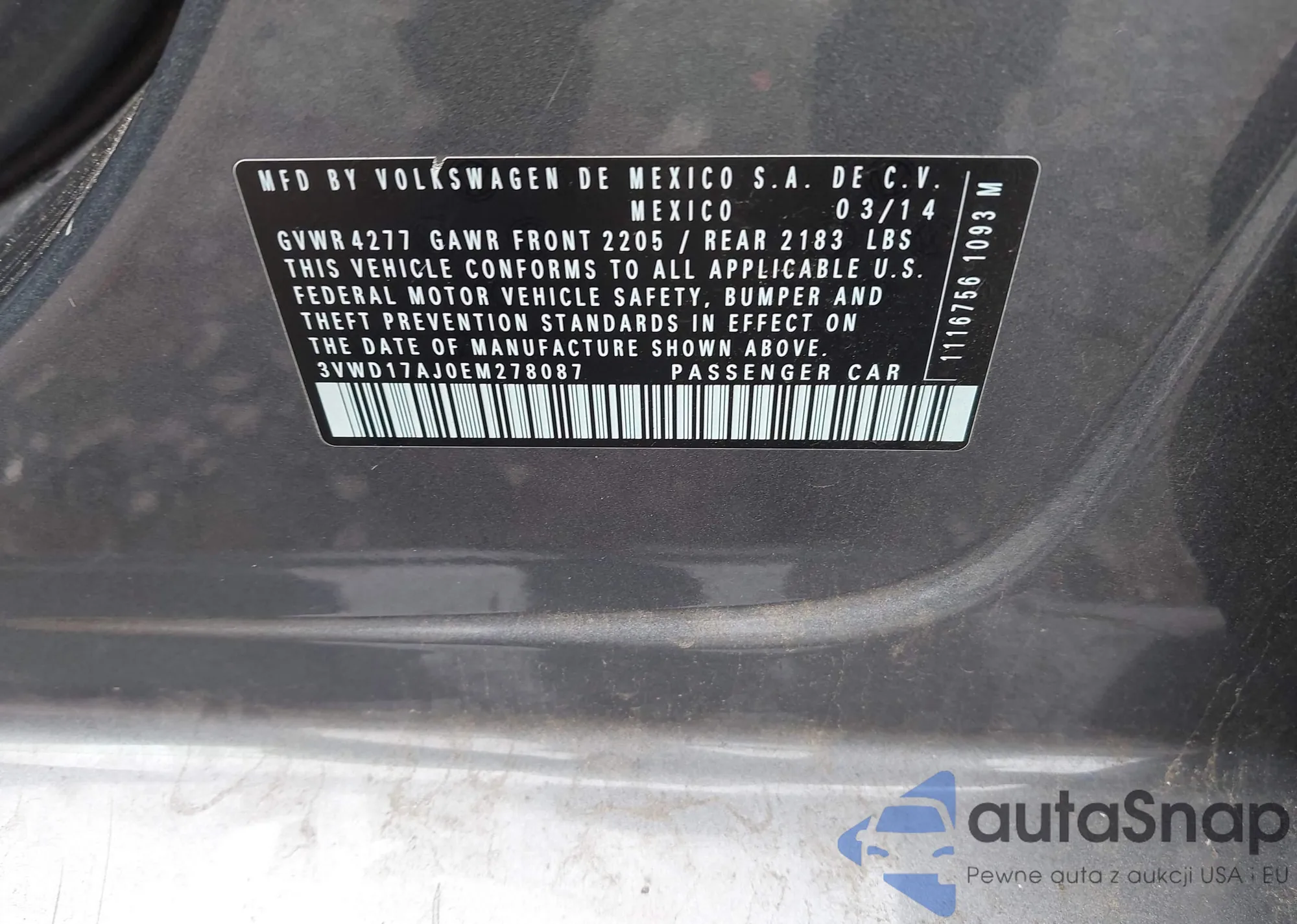 • VIN 3VWD17AJ0EM278087