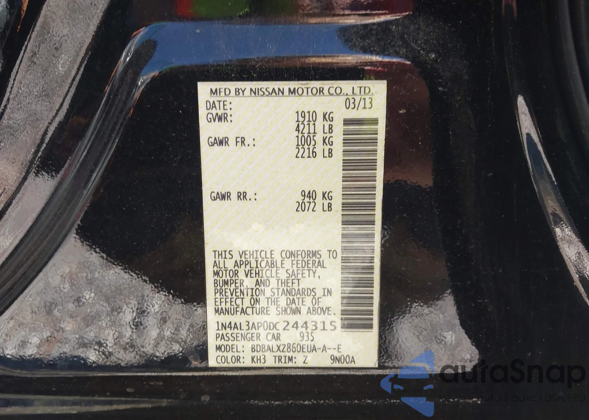 LOT: 43805776 VIN: 3N1AB8DV6RY334896