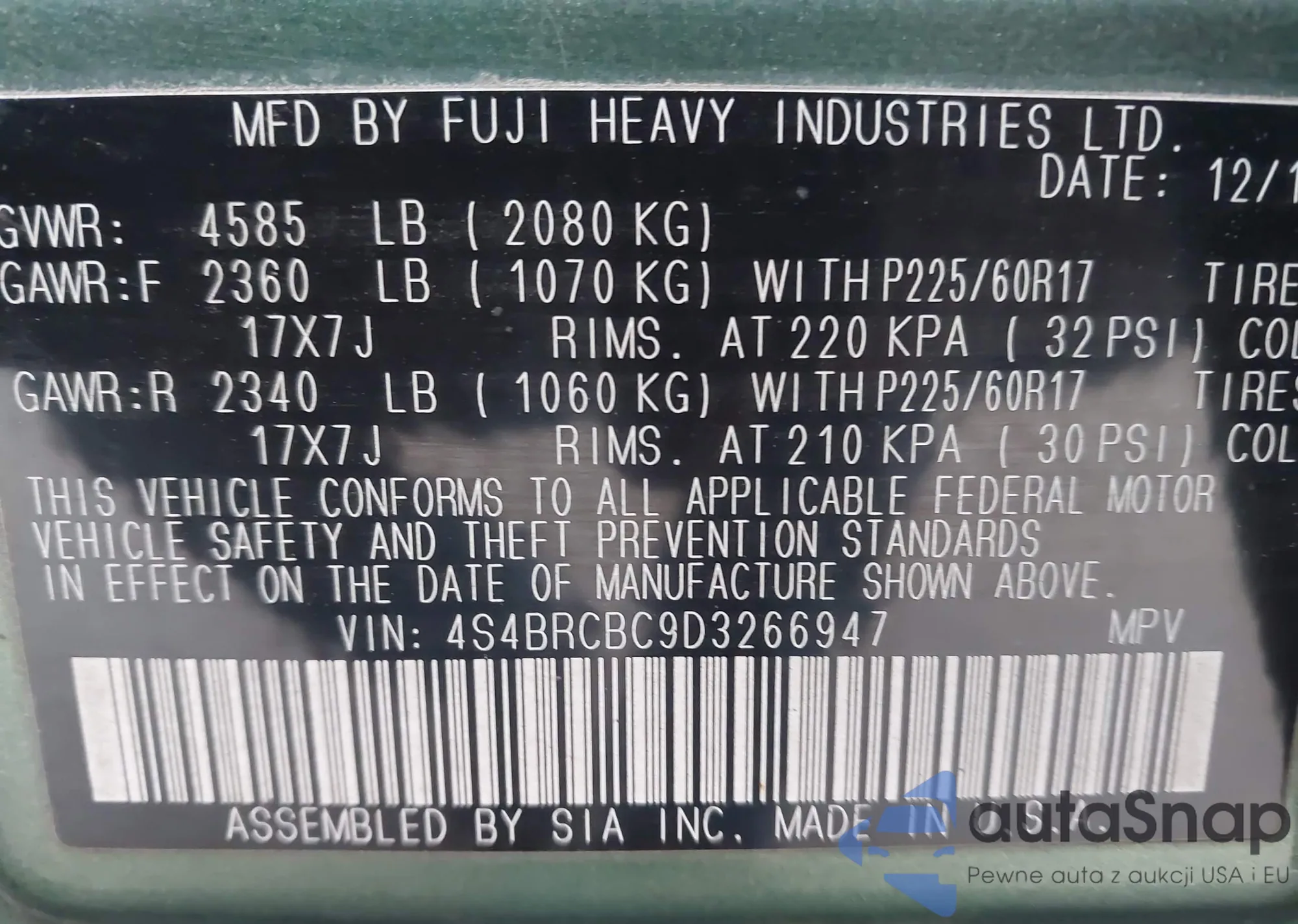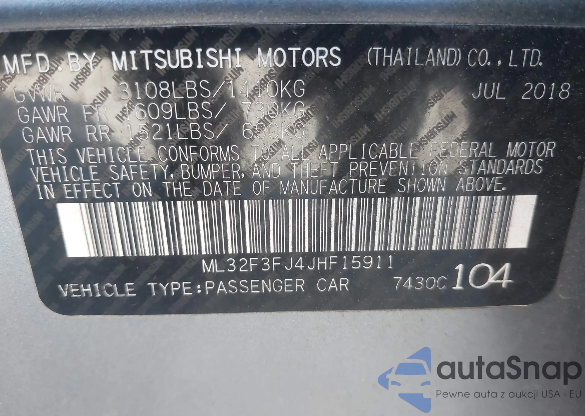 LOT: 43452508 VIN: ML32F3FJ4JHF15911