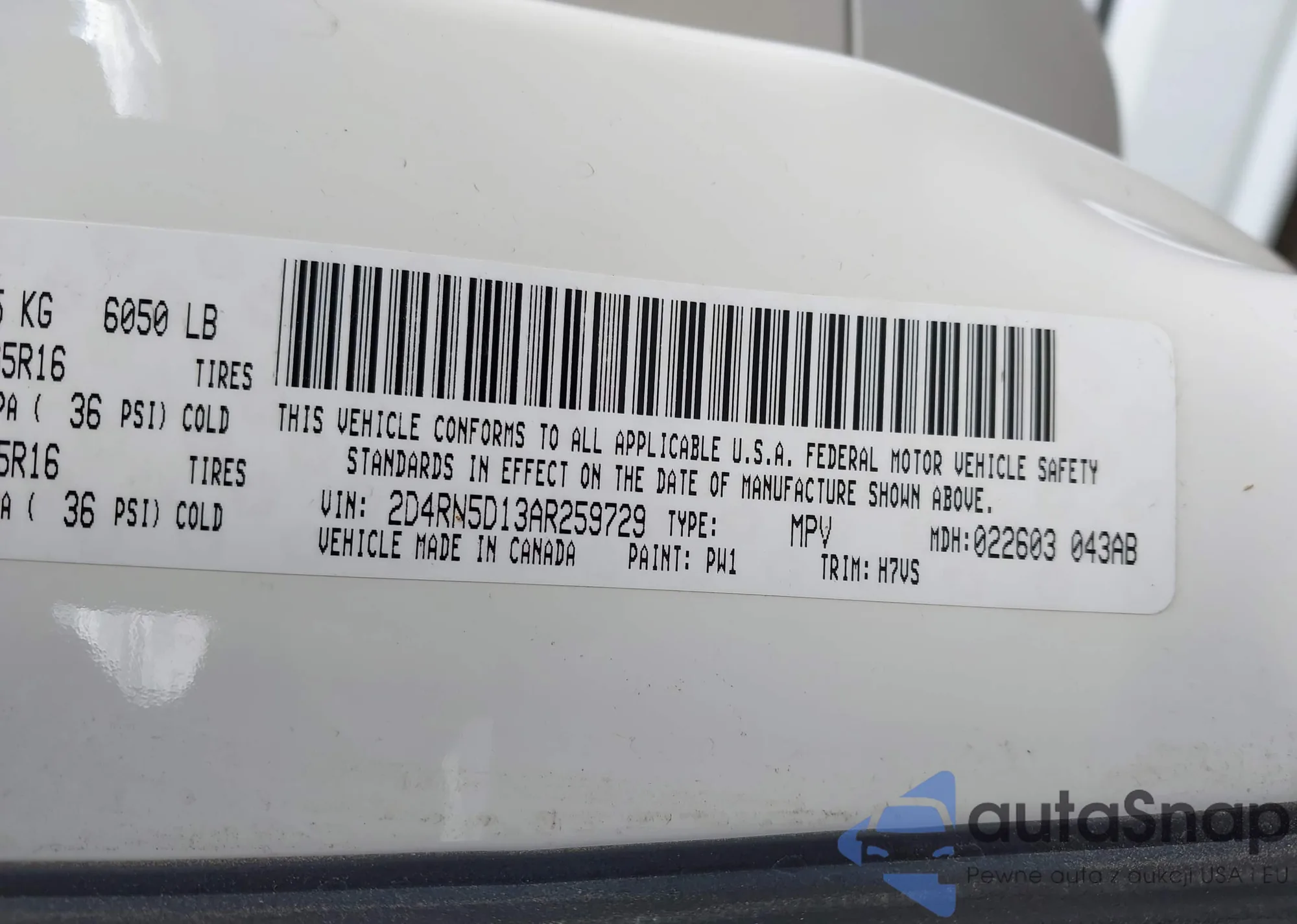 • VIN 1HGCR2F7XDA095316