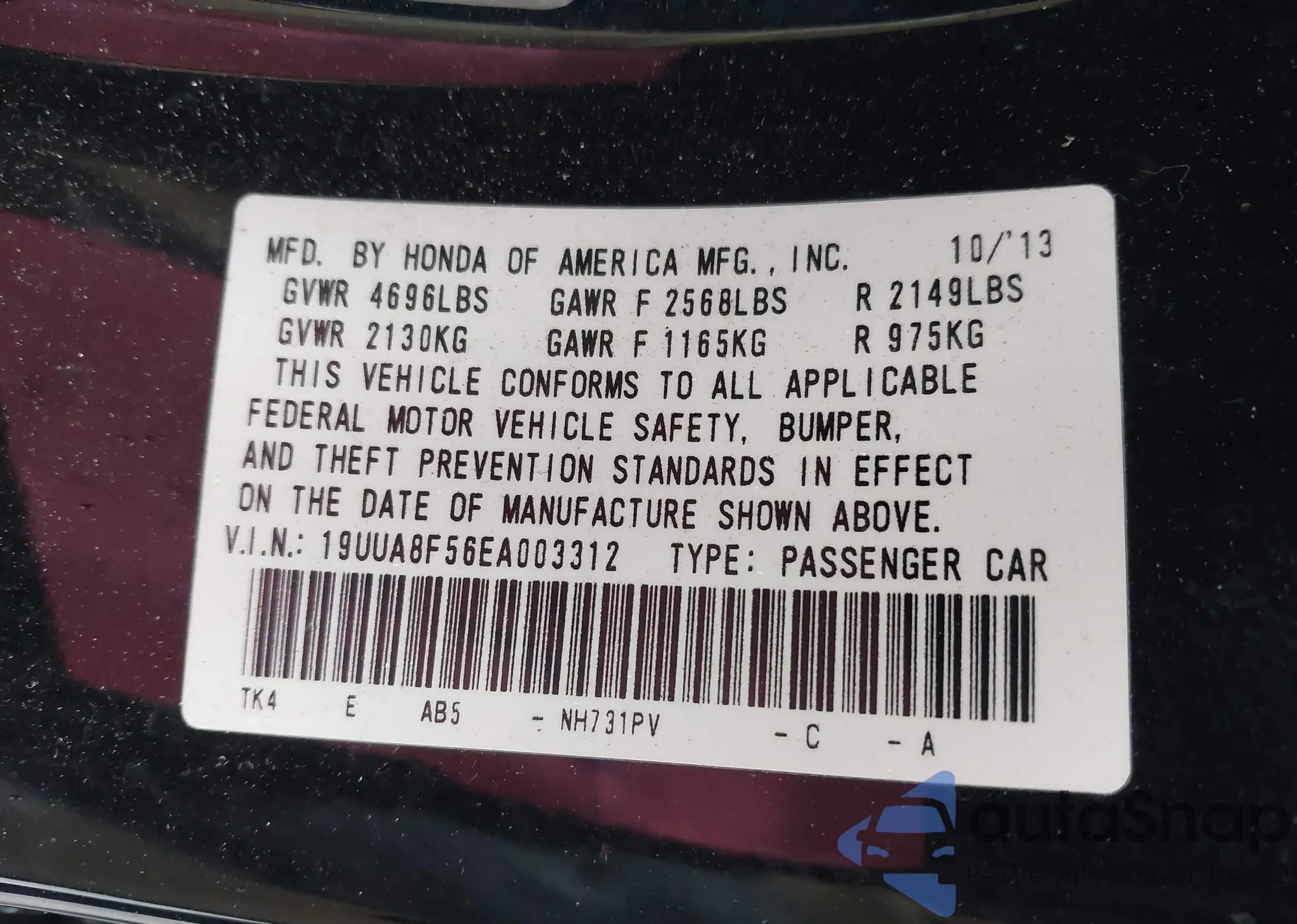 • VIN 19UUA8F56EA003312