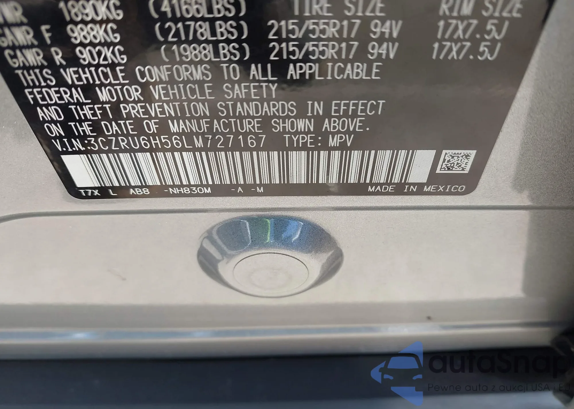 • VIN 3CZRU6H56LM727167