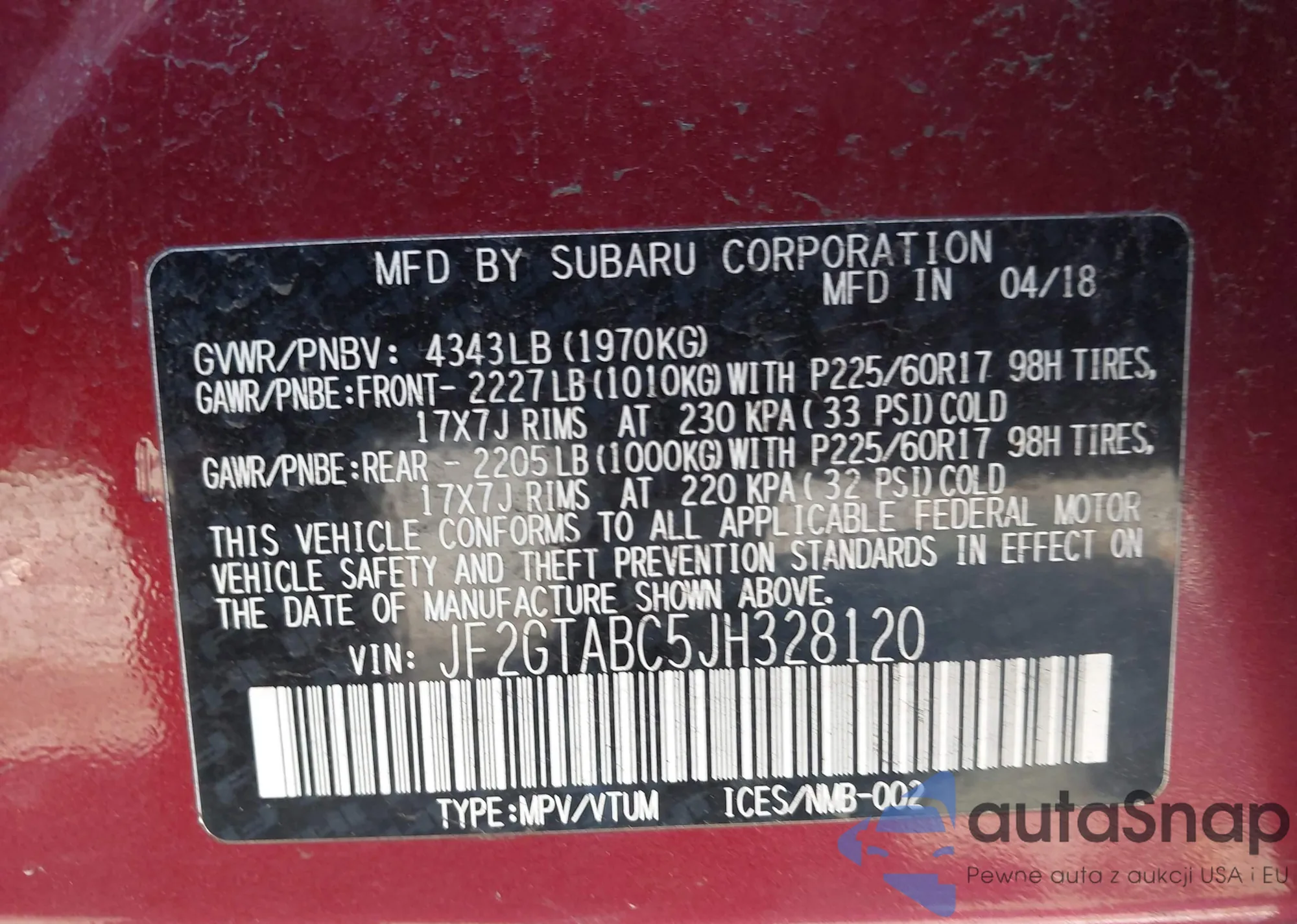 LOT: 43539070 VIN: KNALC4J12H5085826