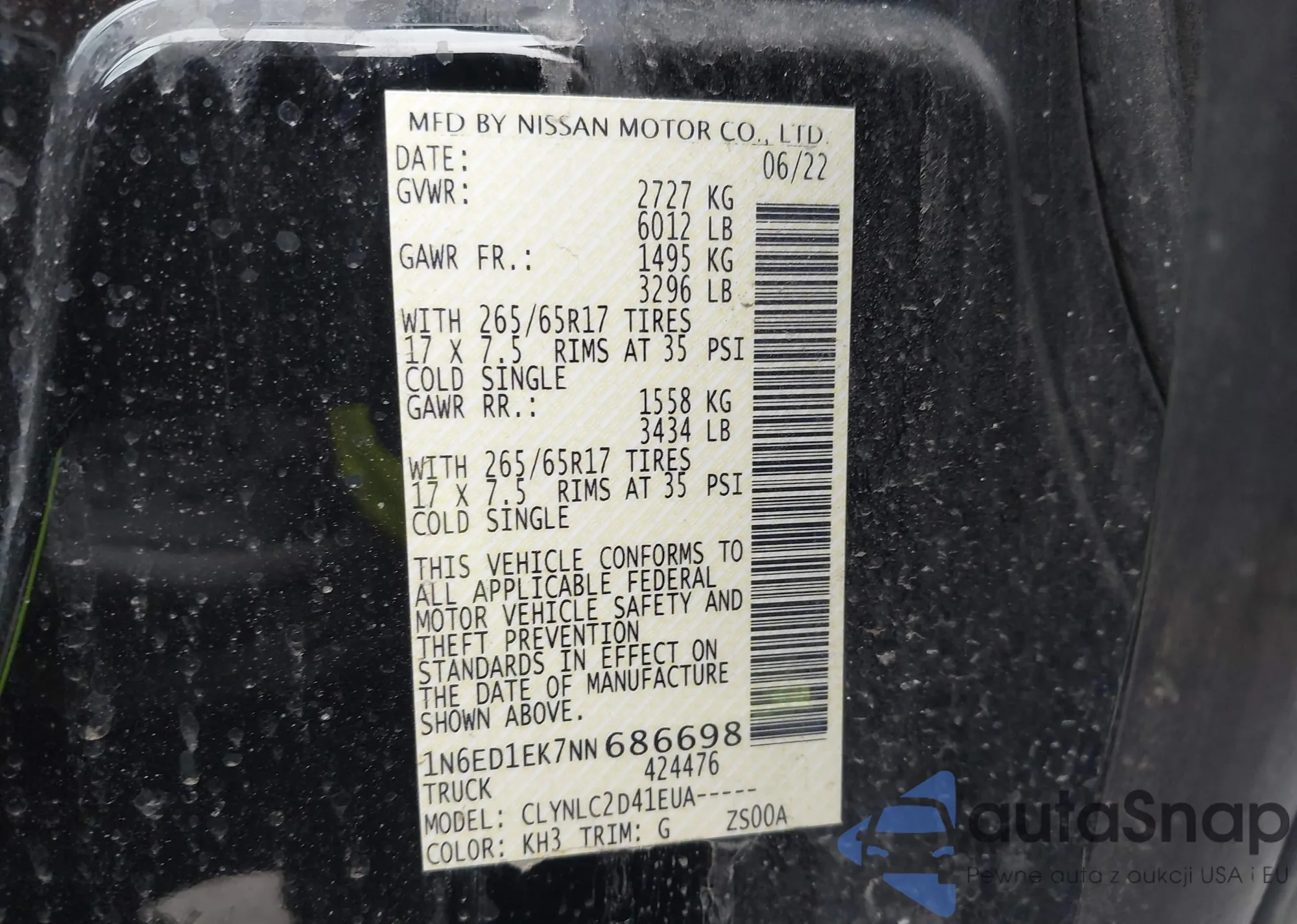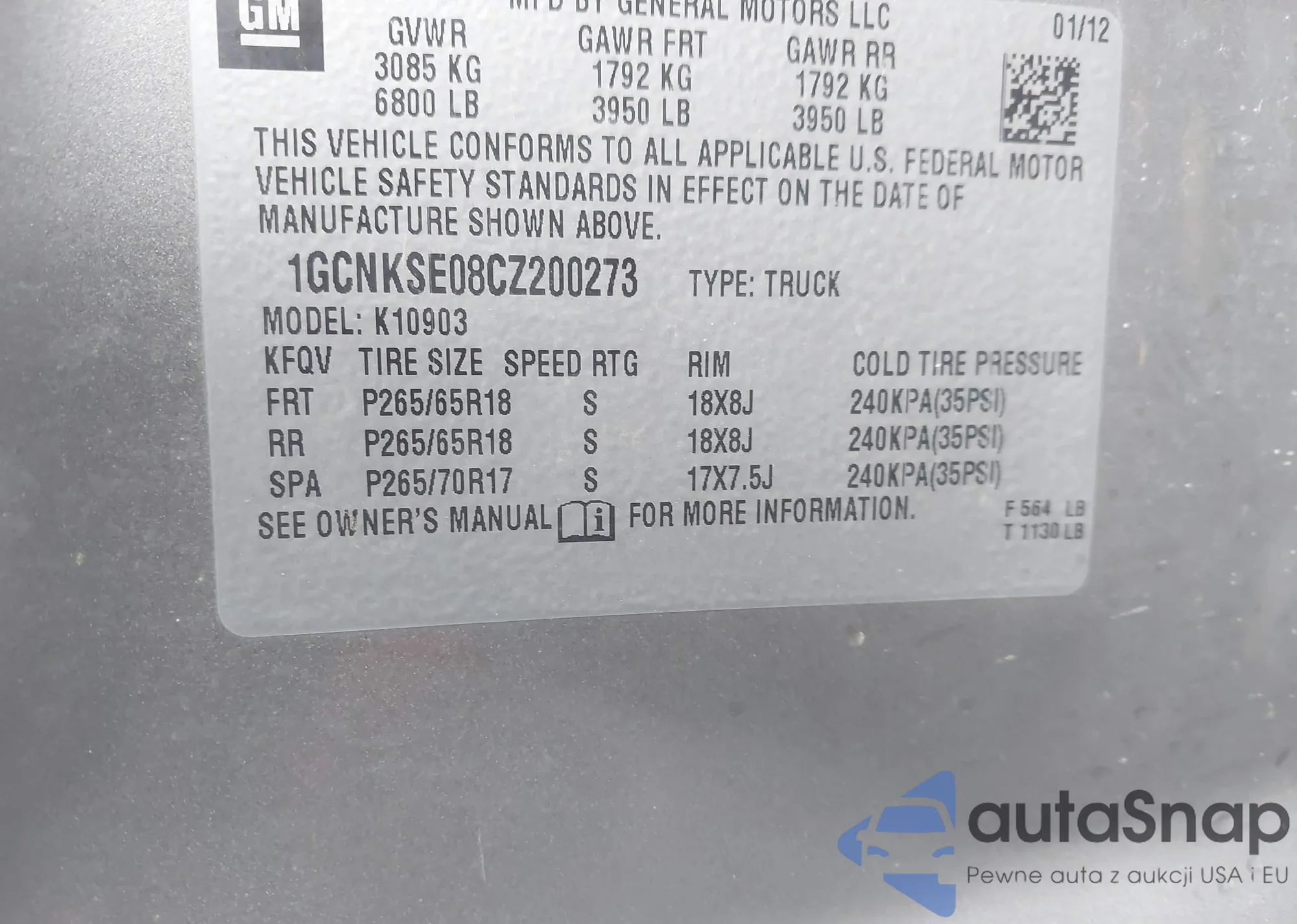 • VIN 3KPFT4DE7SE062925
