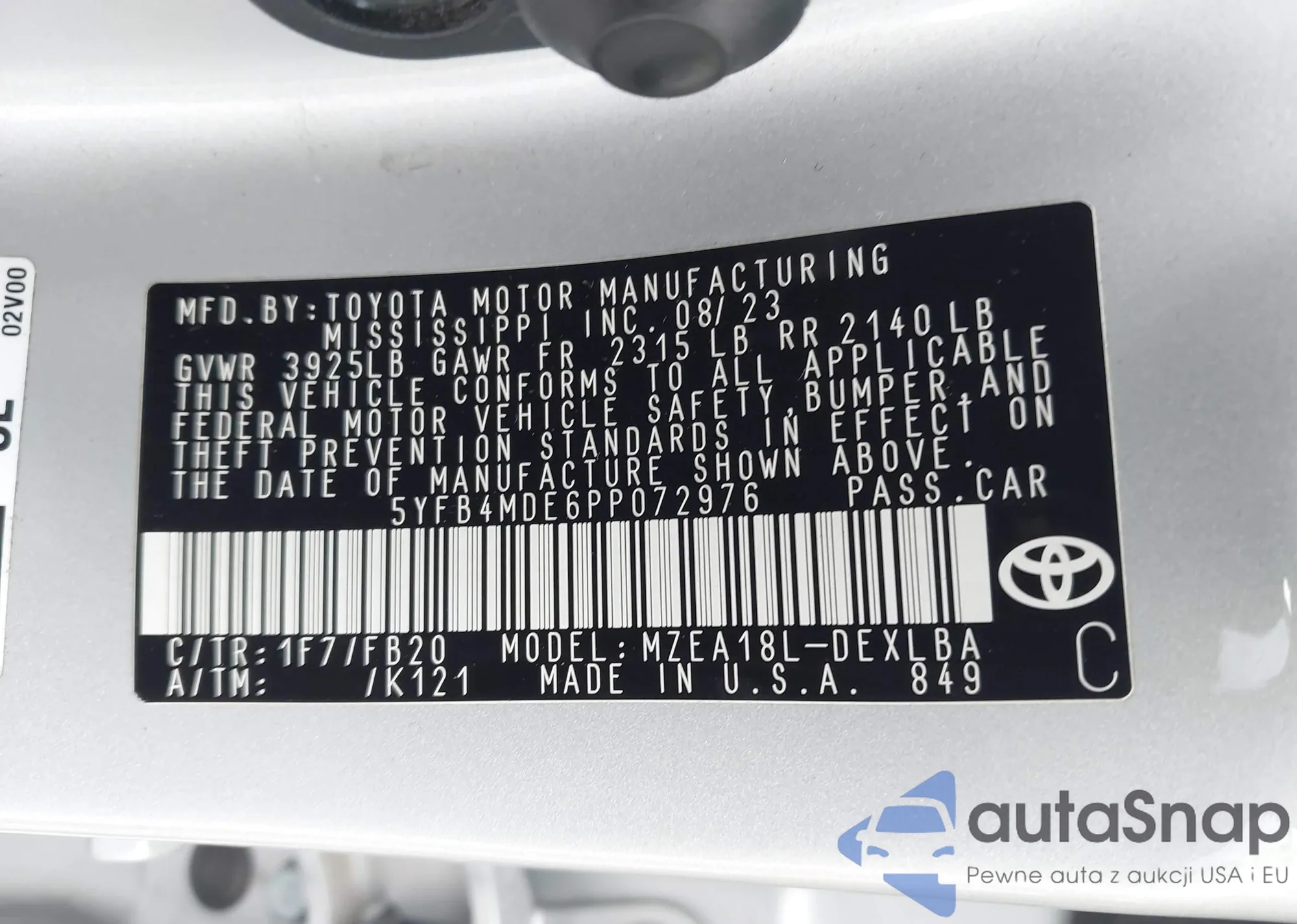 • VIN 5YFB4MDE6PP072976