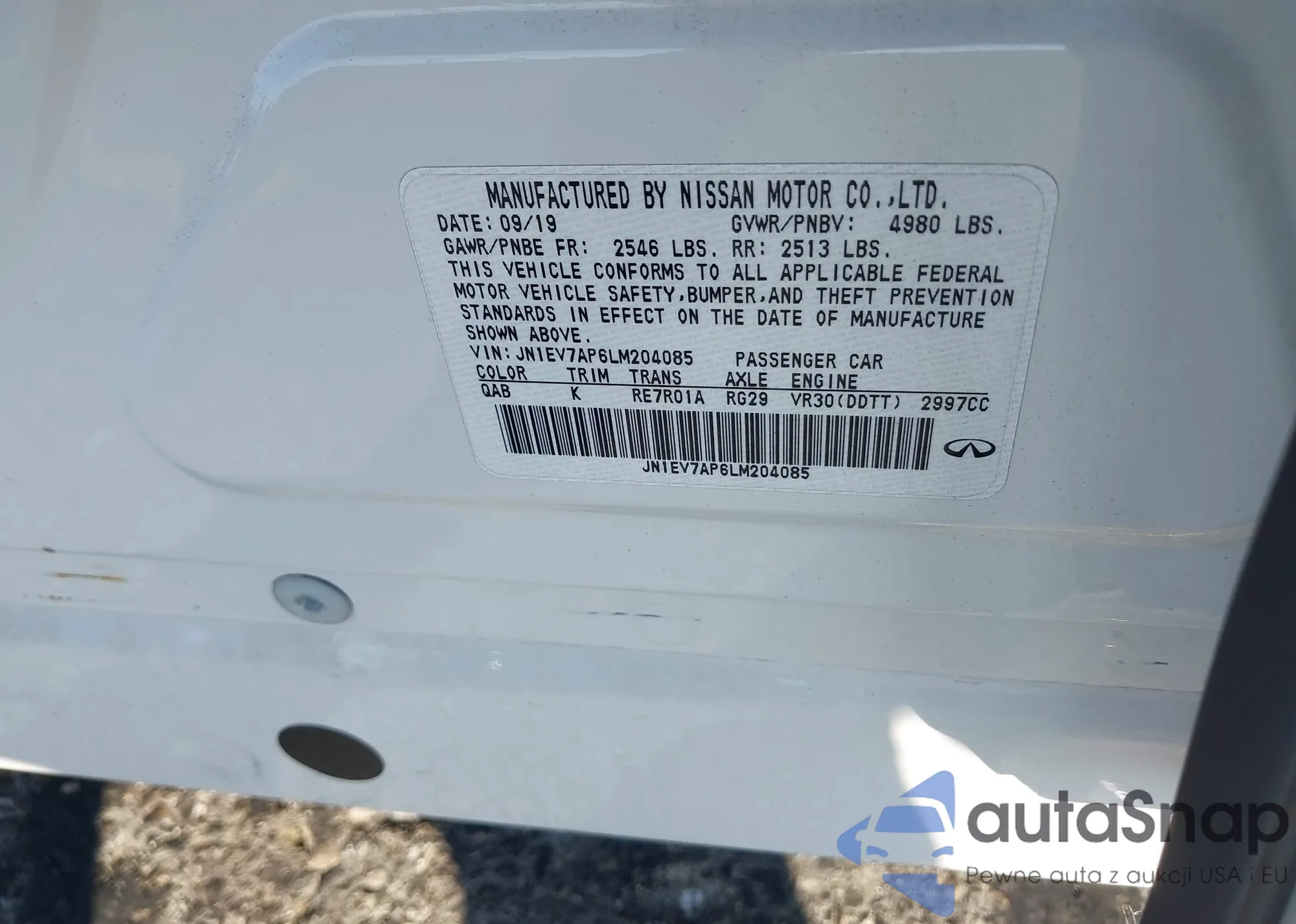 LOT: 43634767 VIN: JN1EV7AP6LM204085