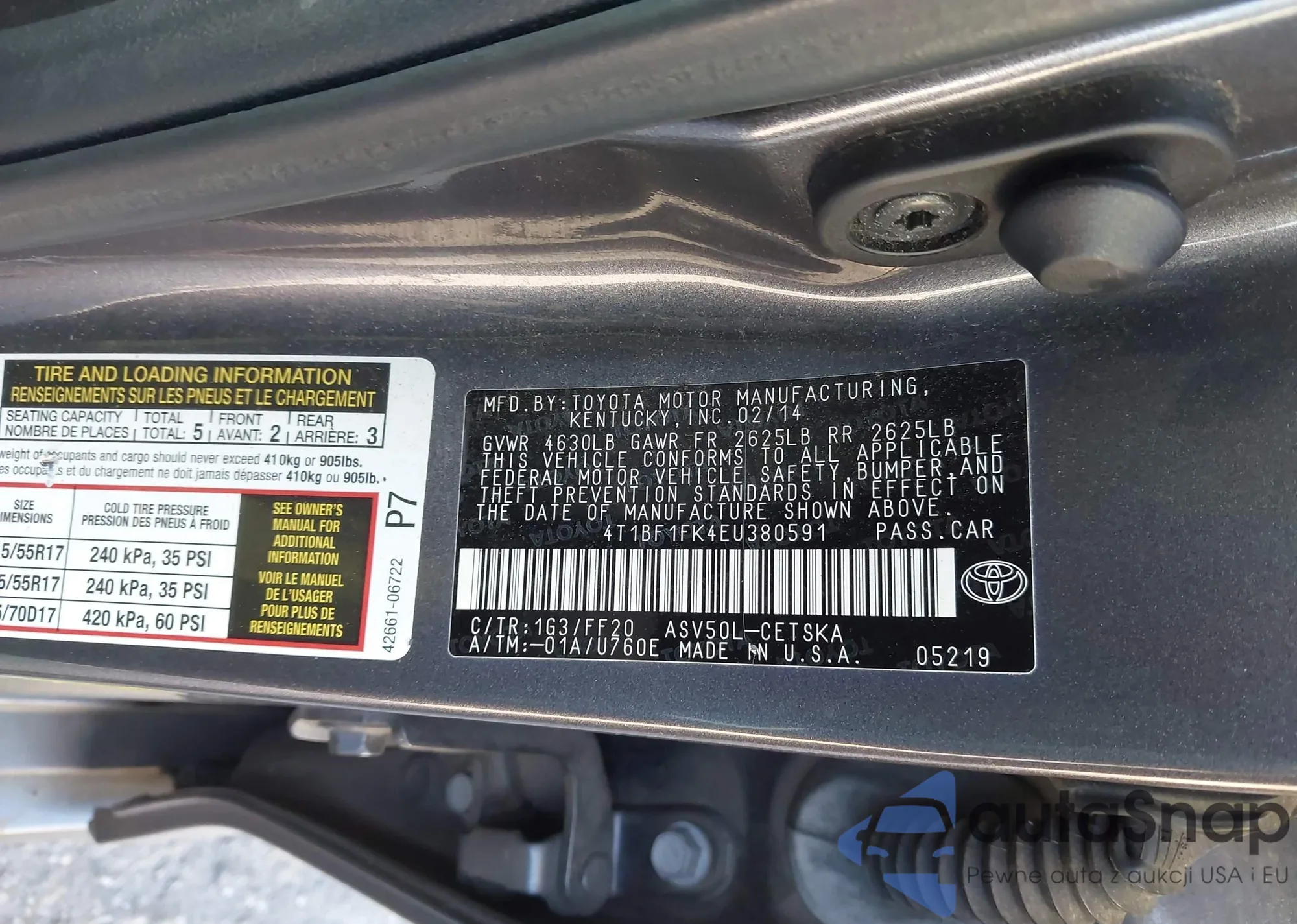 • VIN 4T1BF1FK4EU380591