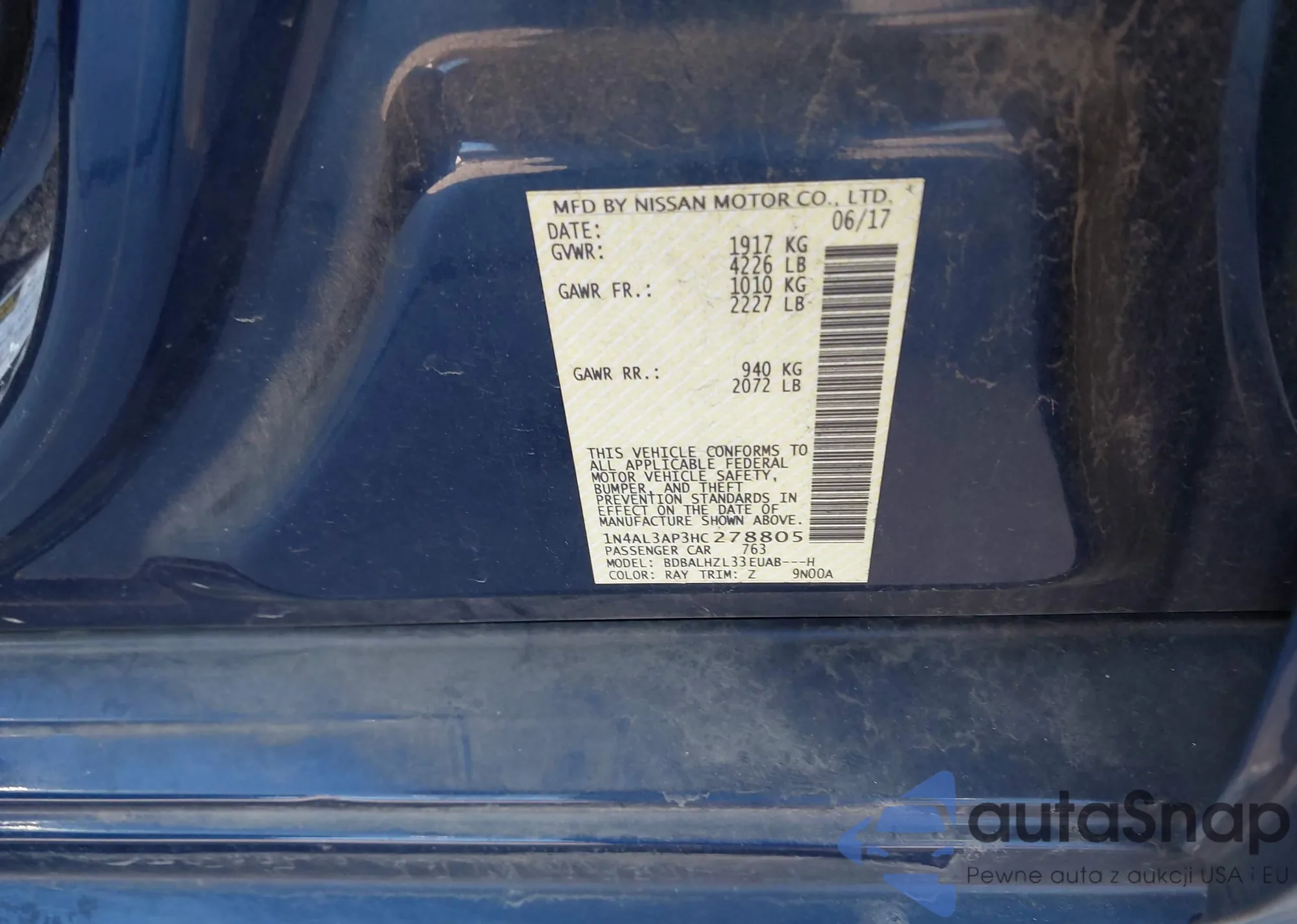 LOT: 43584817 VIN: 1N4AL3AP3HC278805