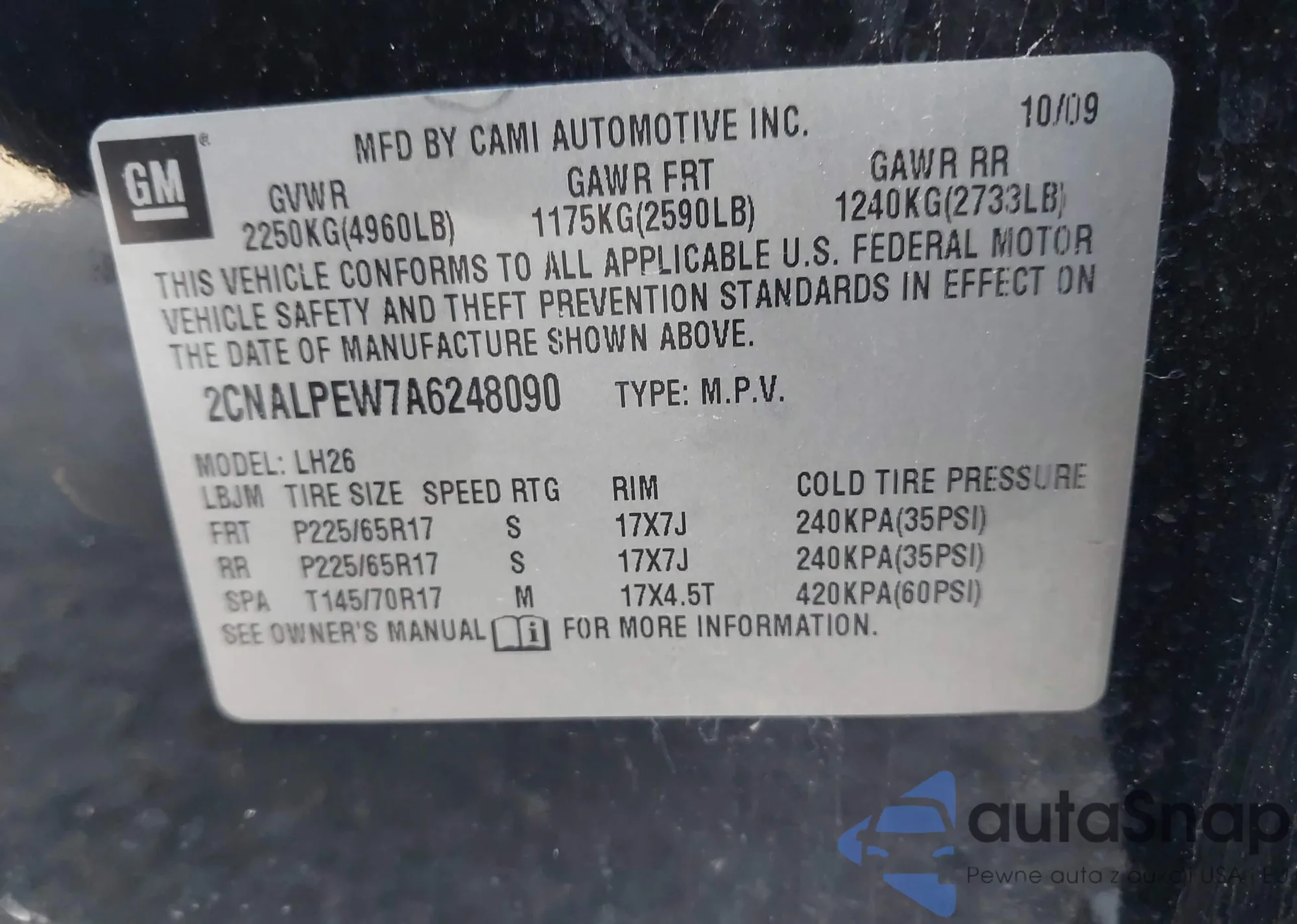 • VIN KL8CB6S95DC508418