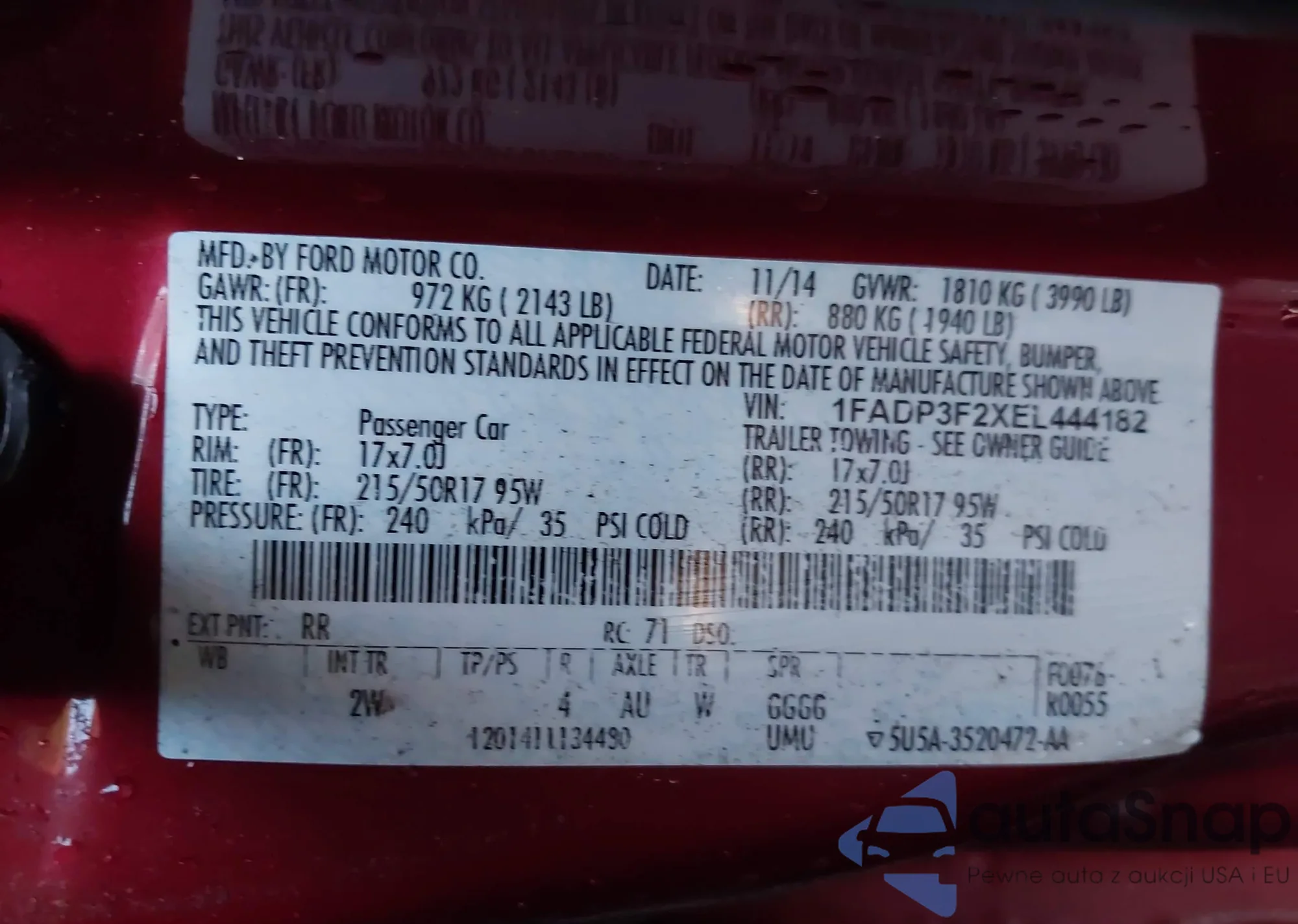 • VIN 1FADP3F2XEL444182
