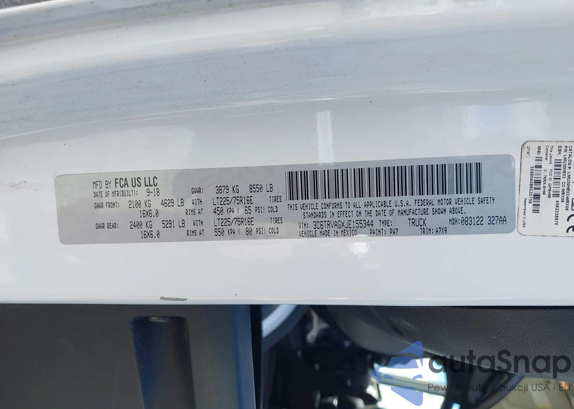 LOT: 43322453 VIN: 3C6UR5CL6NG122012