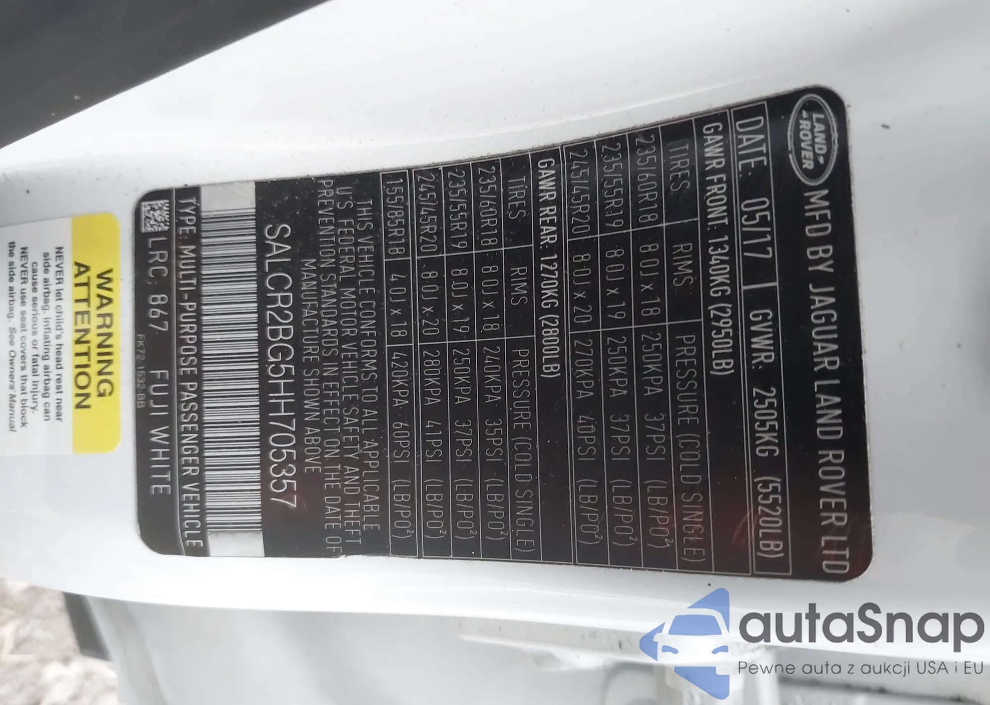• VIN SALCR2BG5HH705357