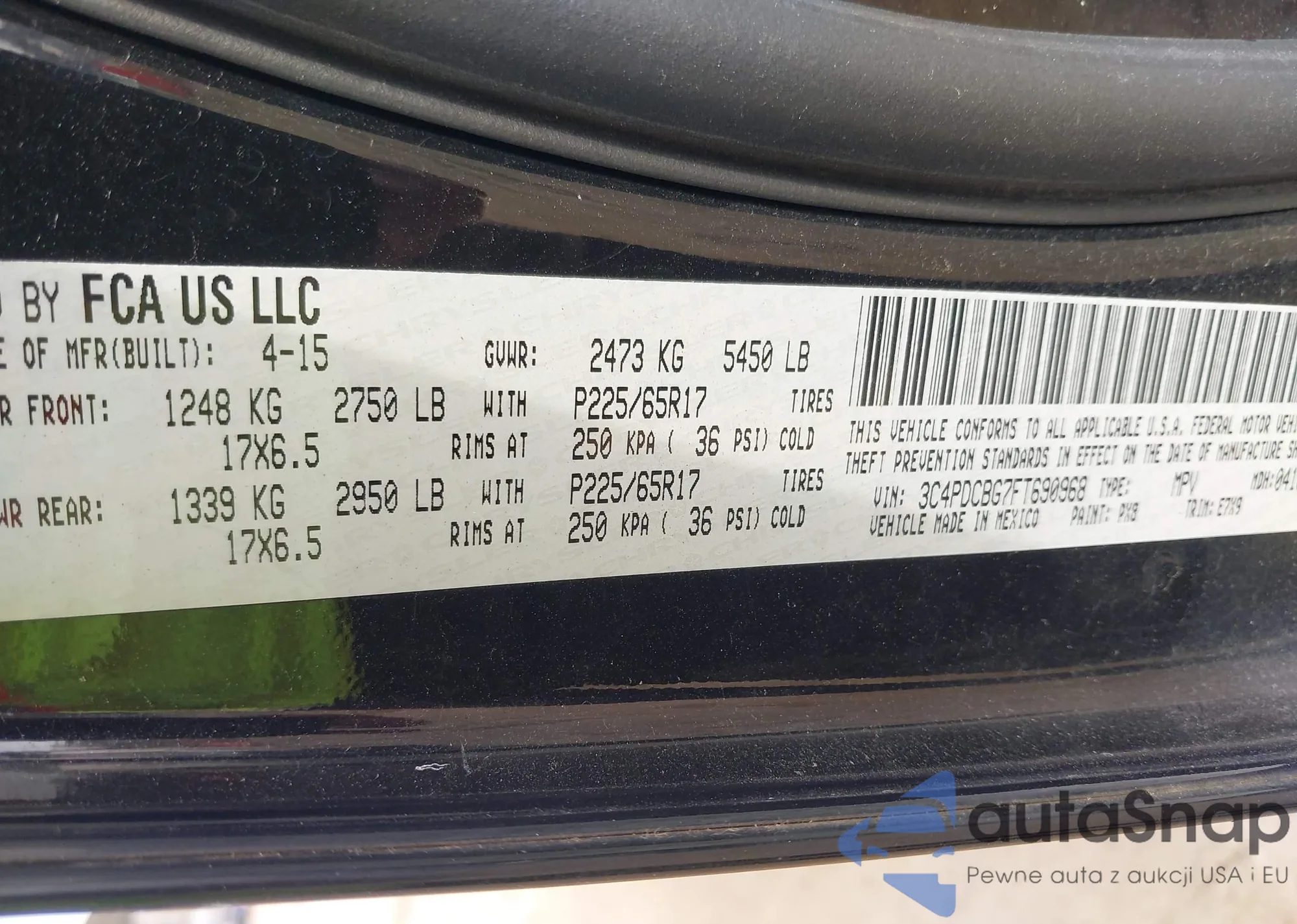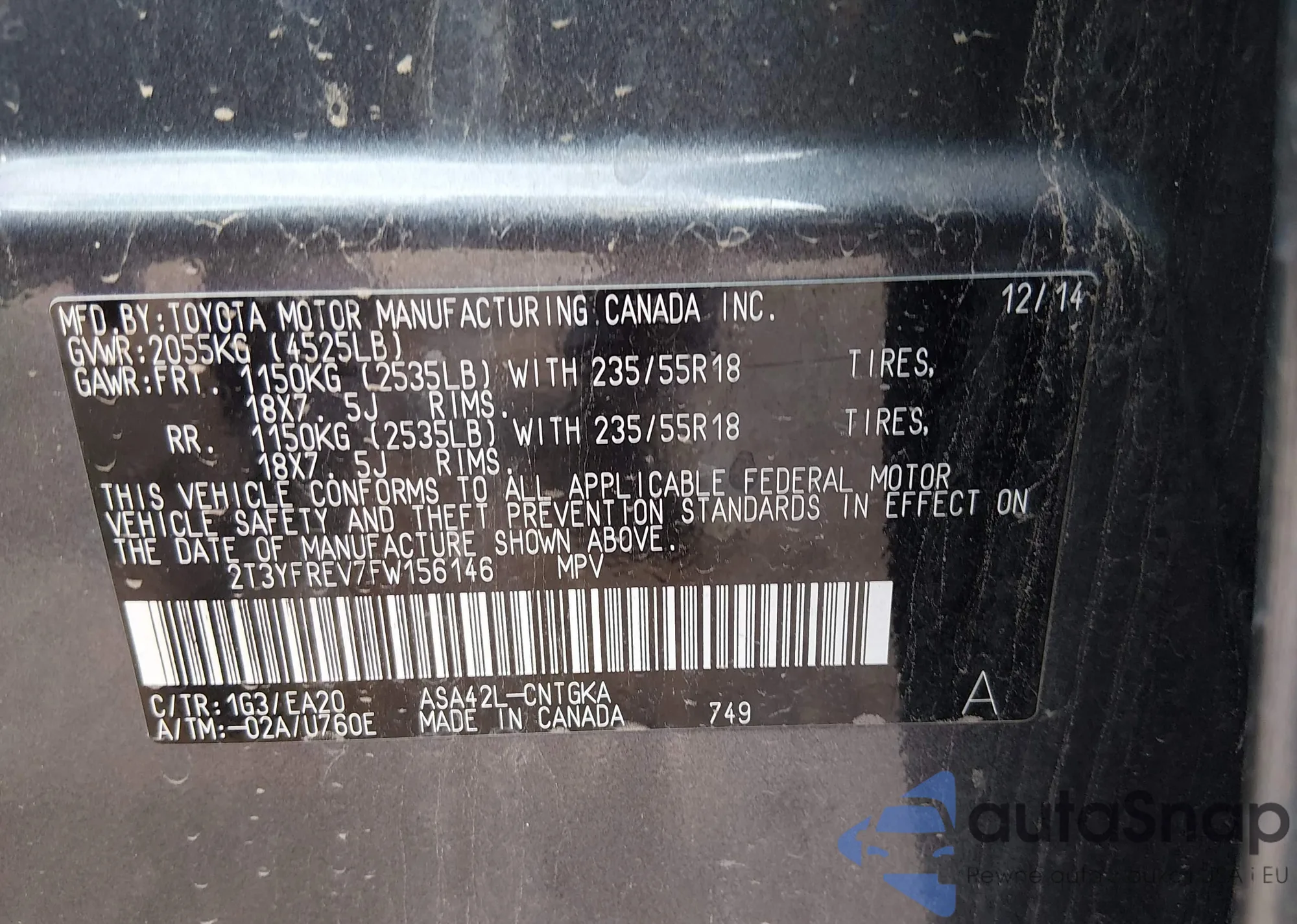 LOT: 43814201 VIN: 2T3YFREV7FW156146