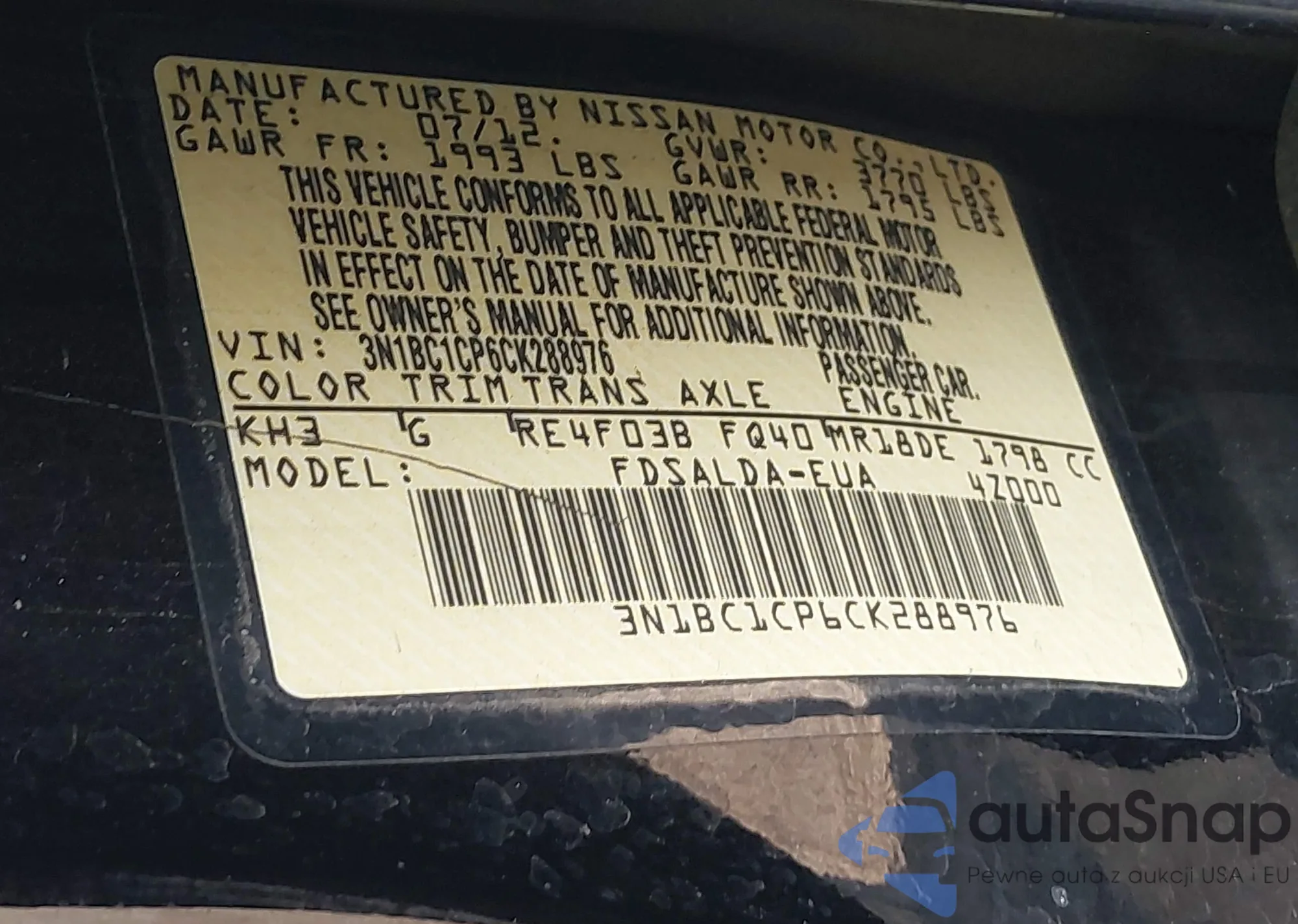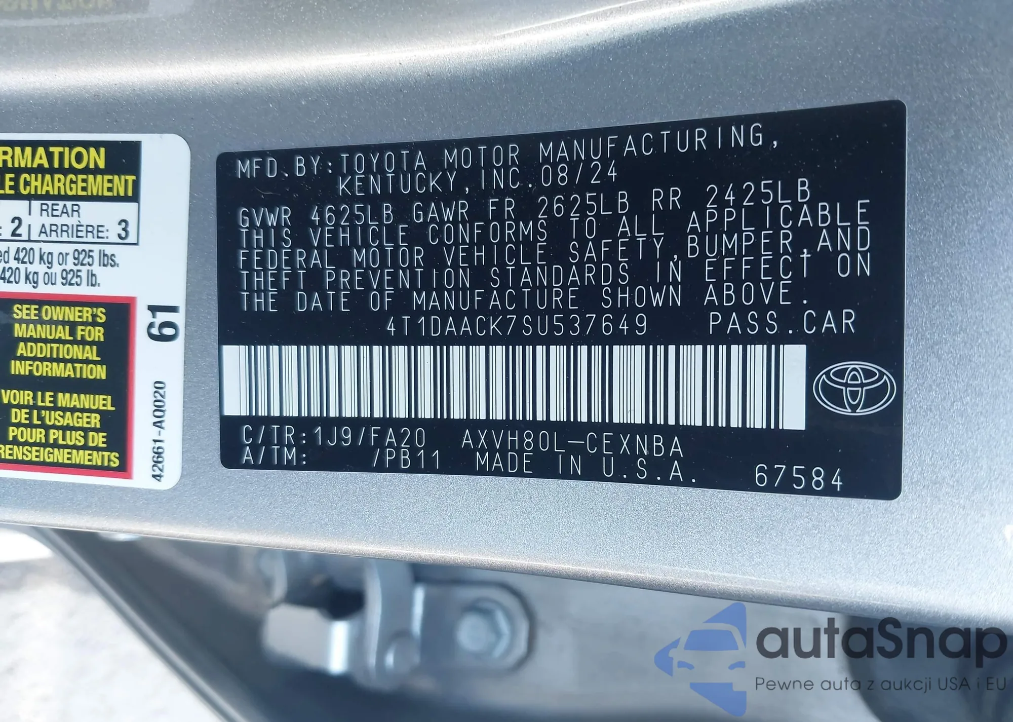 • VIN 4T1DAACK7SU537649