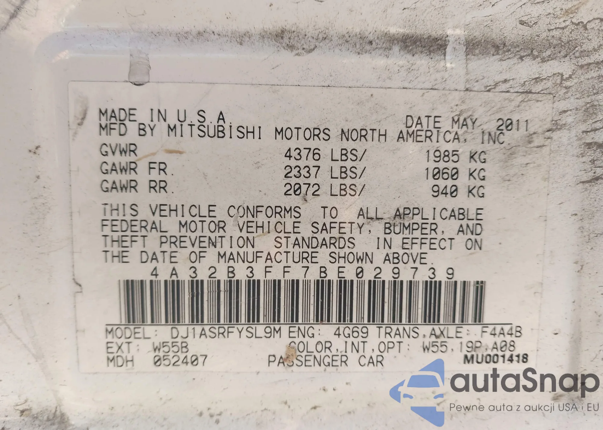 LOT: 43697944 VIN: 4A32B3FF7BE029739