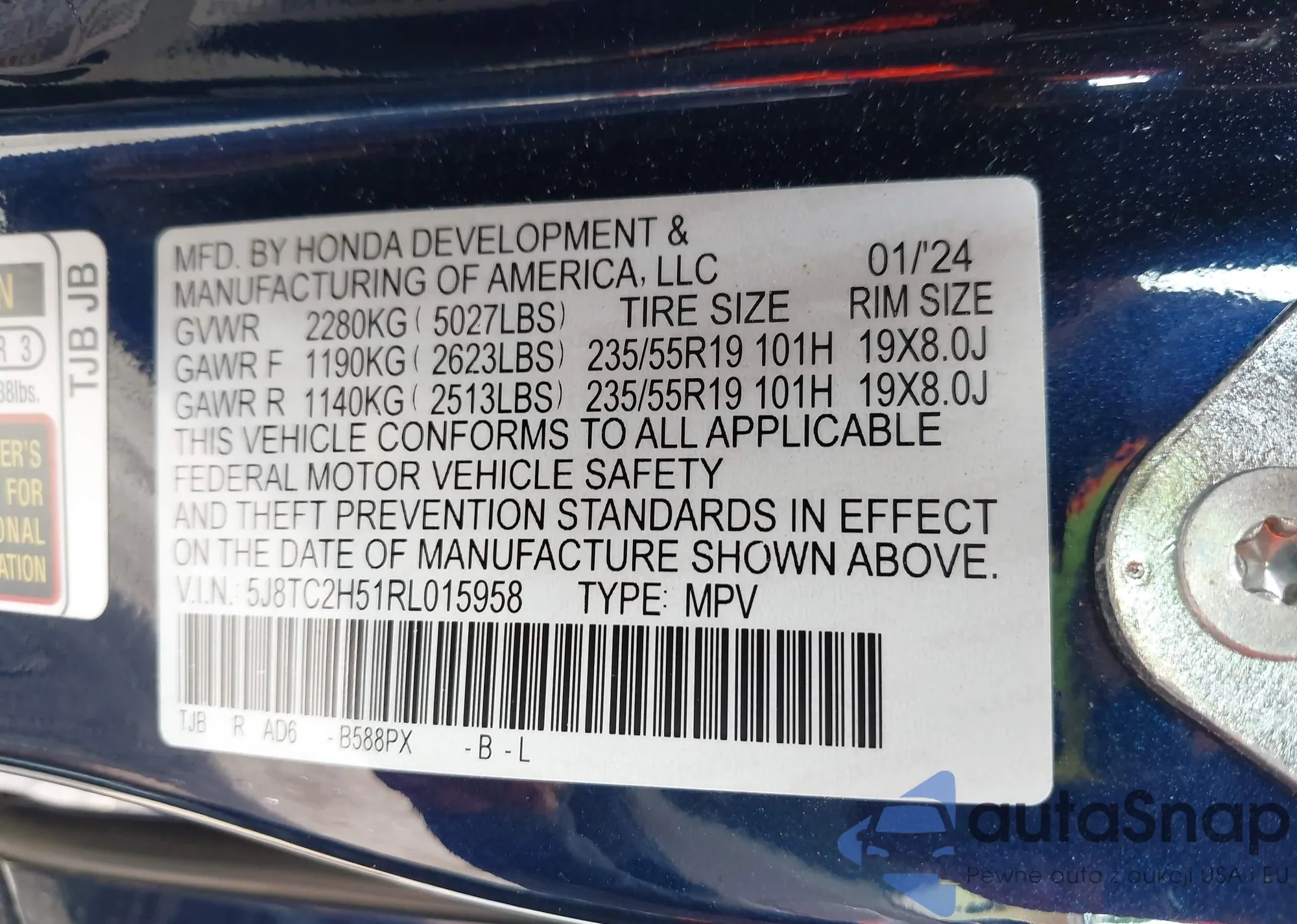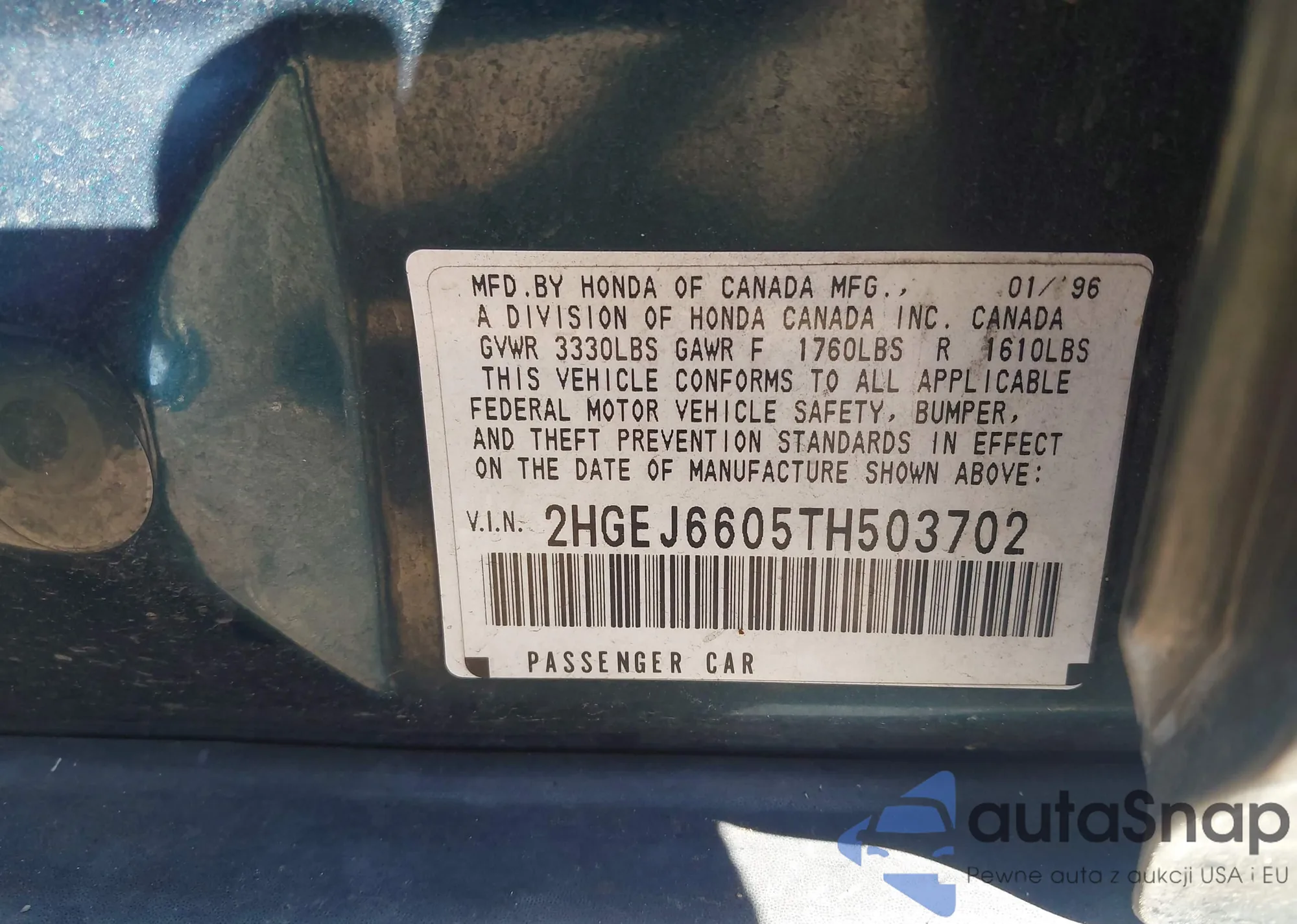 • VIN 2HGEJ6605TH503702