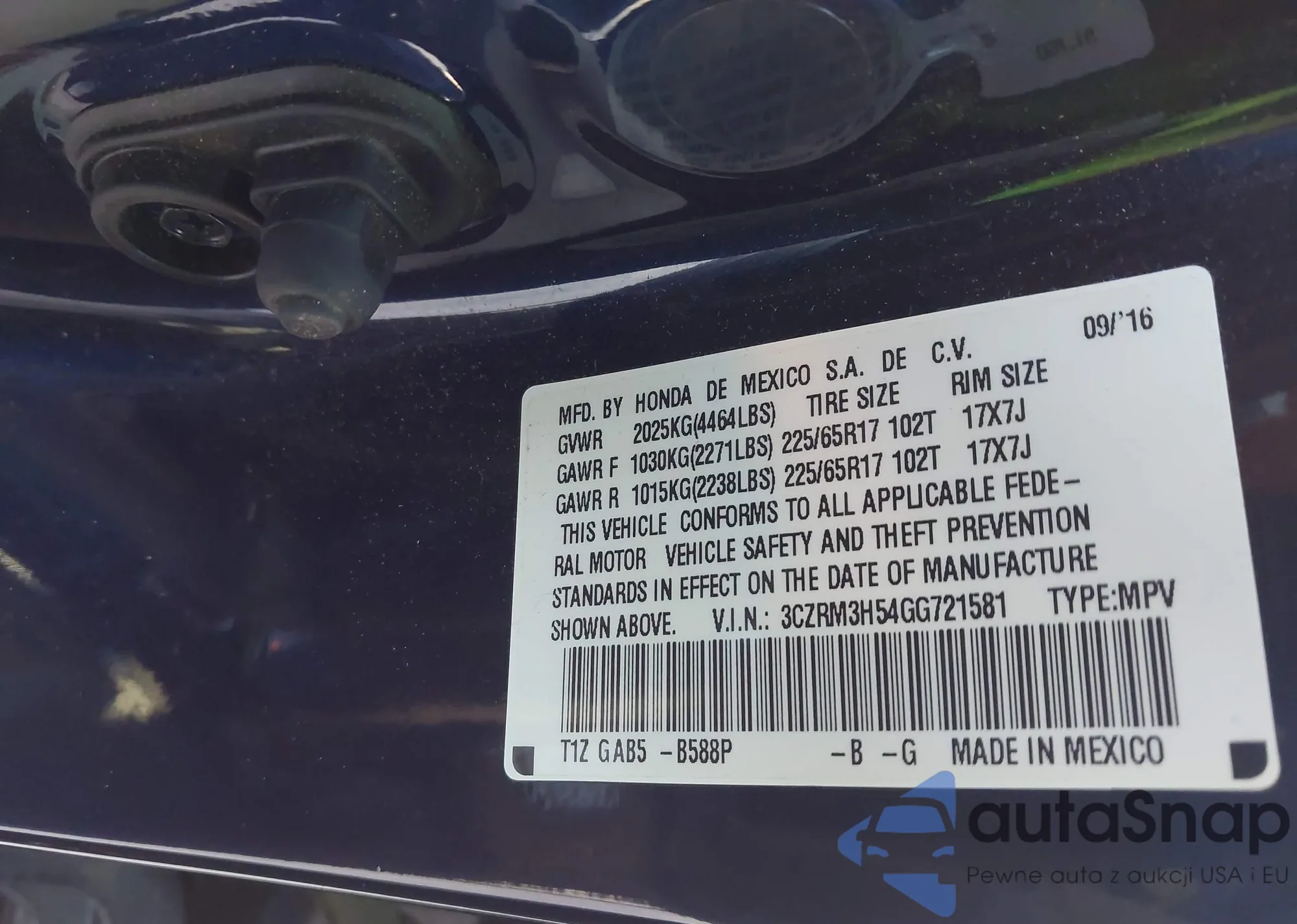 • VIN 3CZRM3H54GG721581