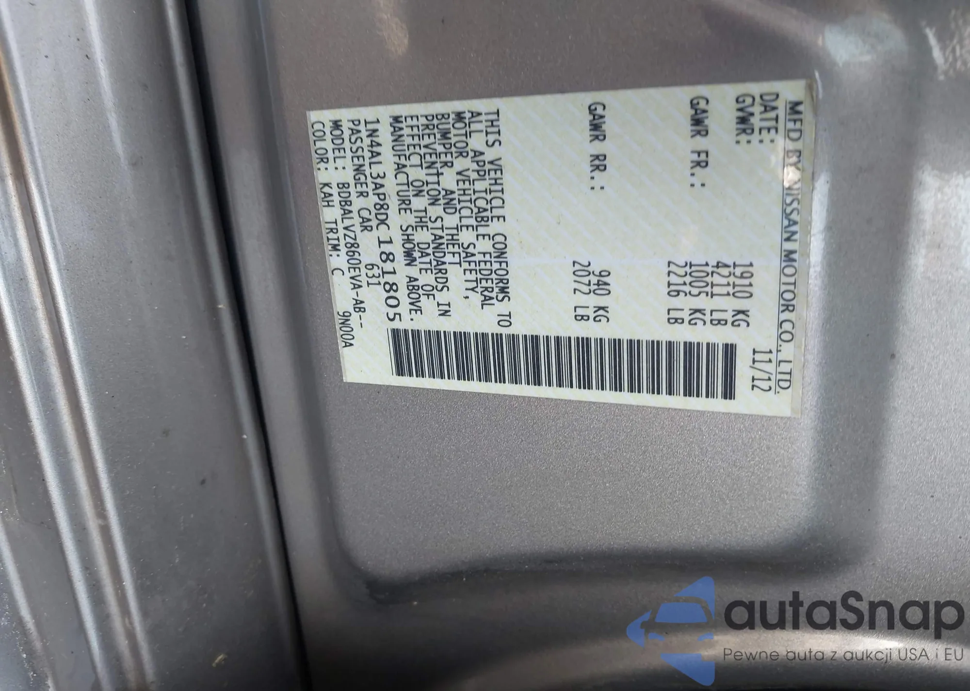 LOT: 42350576 VIN: 1N4AL3AP8DC181805