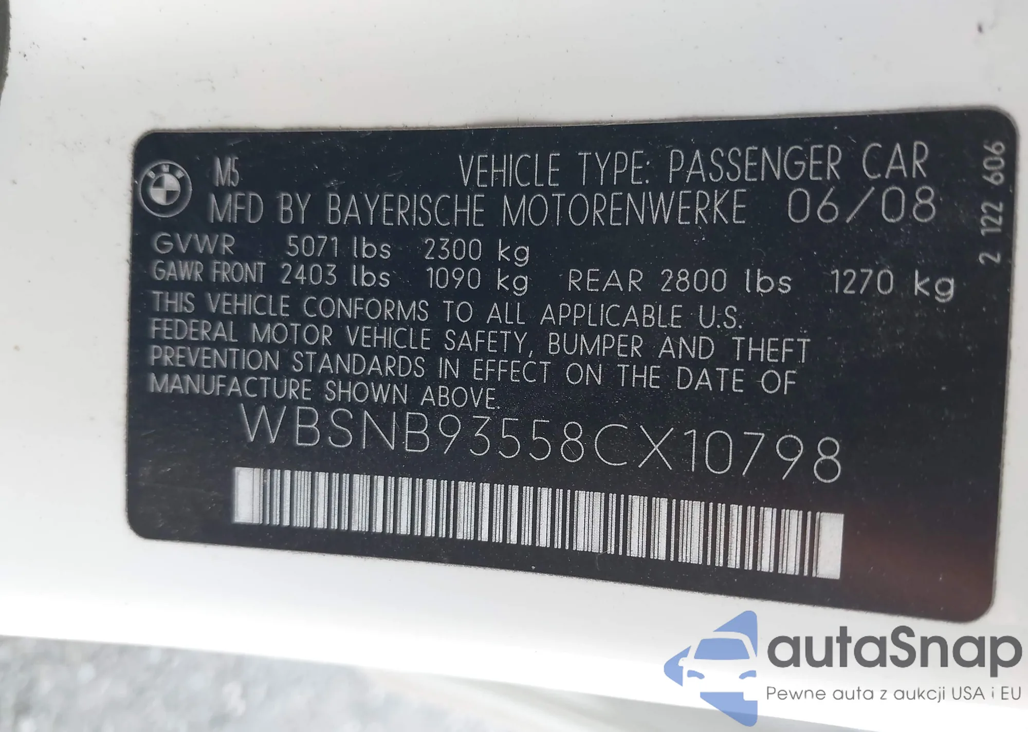 • VIN WBSNB93558CX10798