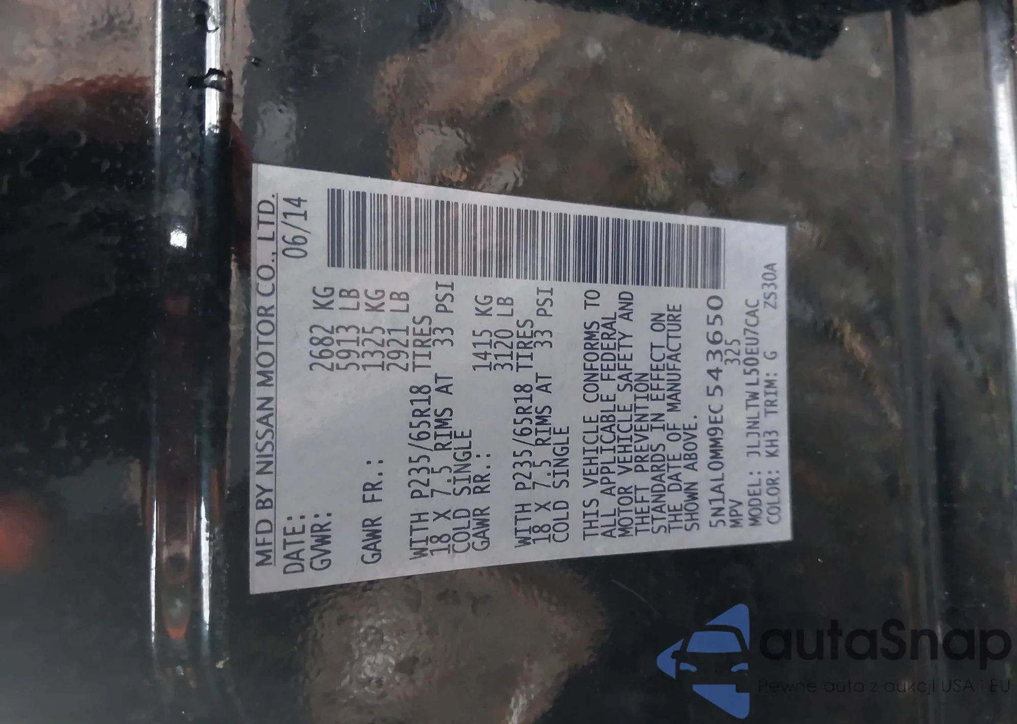 • VIN 5N1AL0MM9EC543650