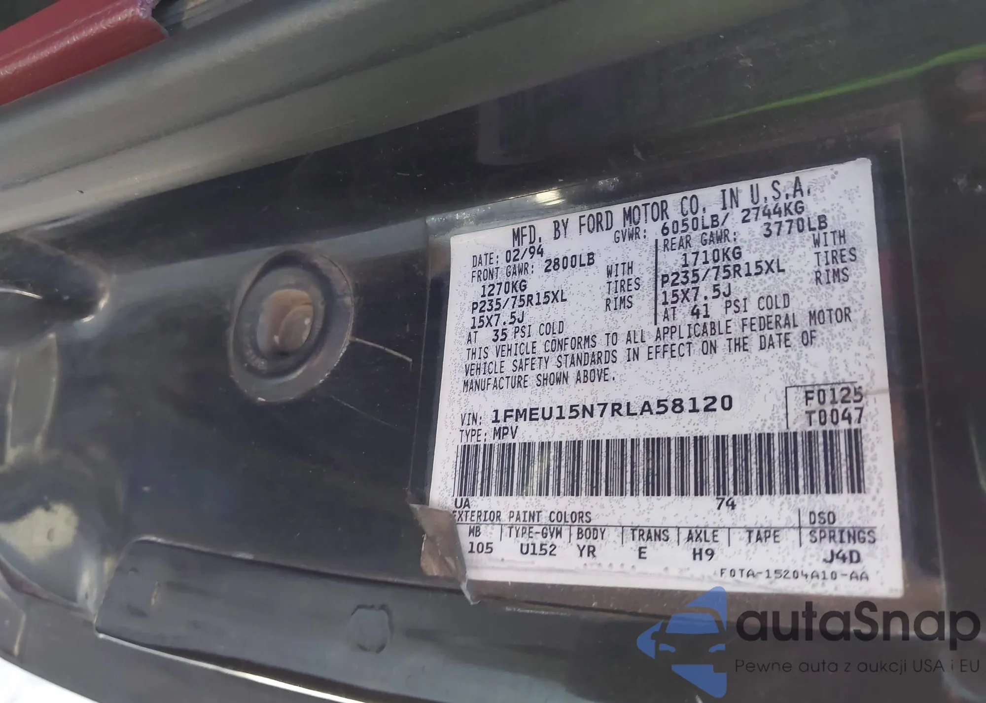 • VIN 1FMEU15N7RLA58120