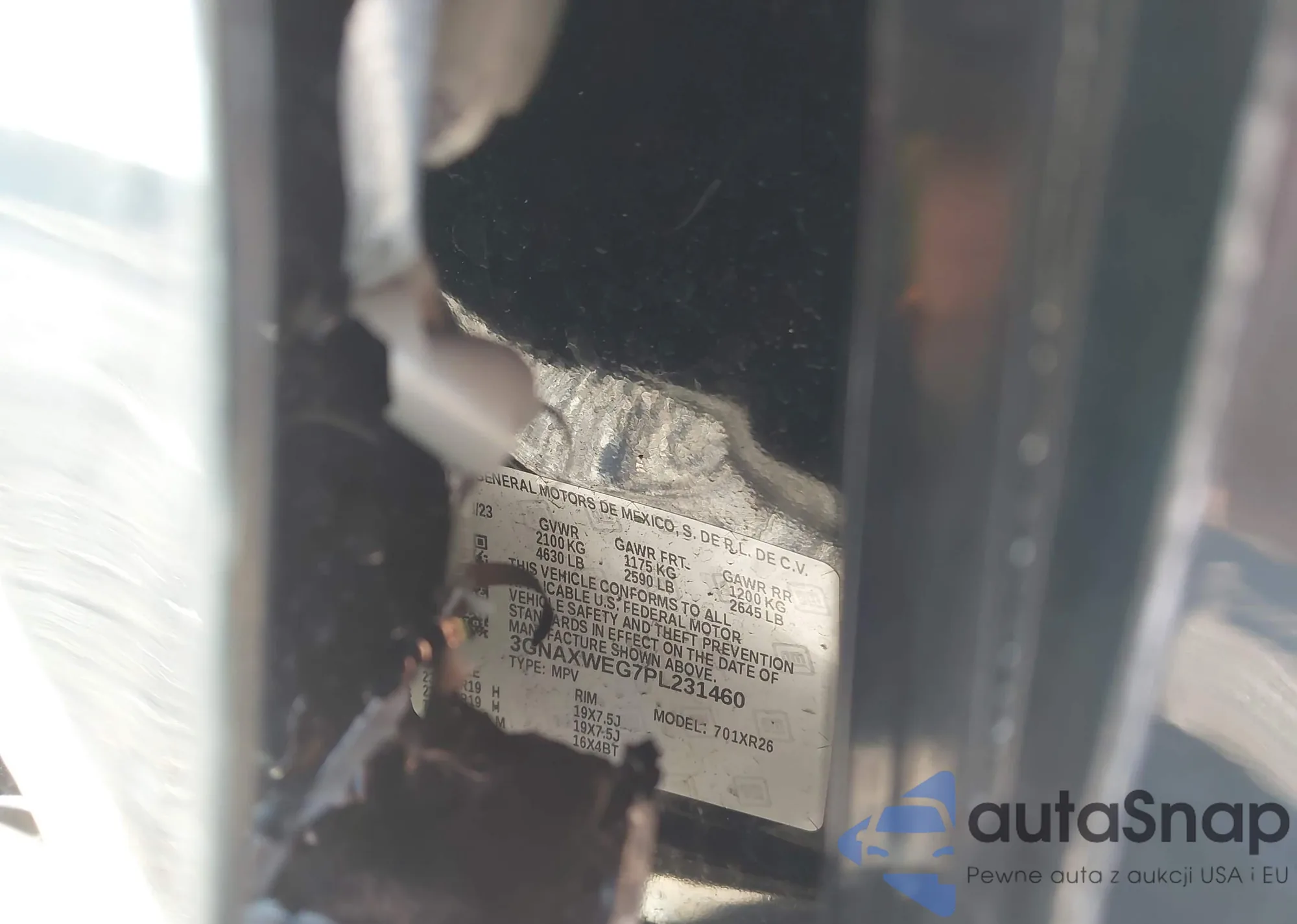 • VIN 3GNAXWEG7PL231460