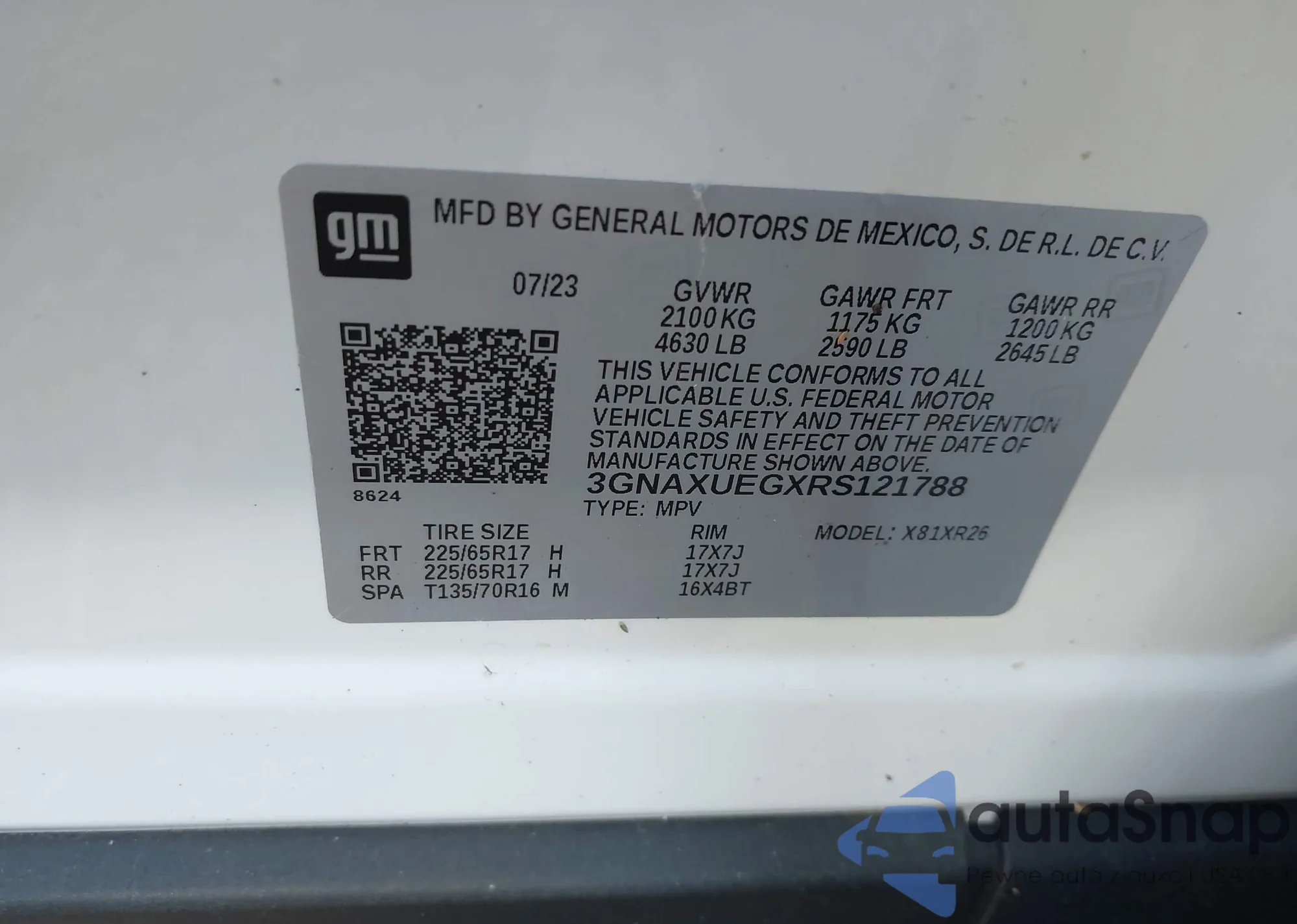 LOT: 43521086 VIN: 3GNAXWEG7PL231460