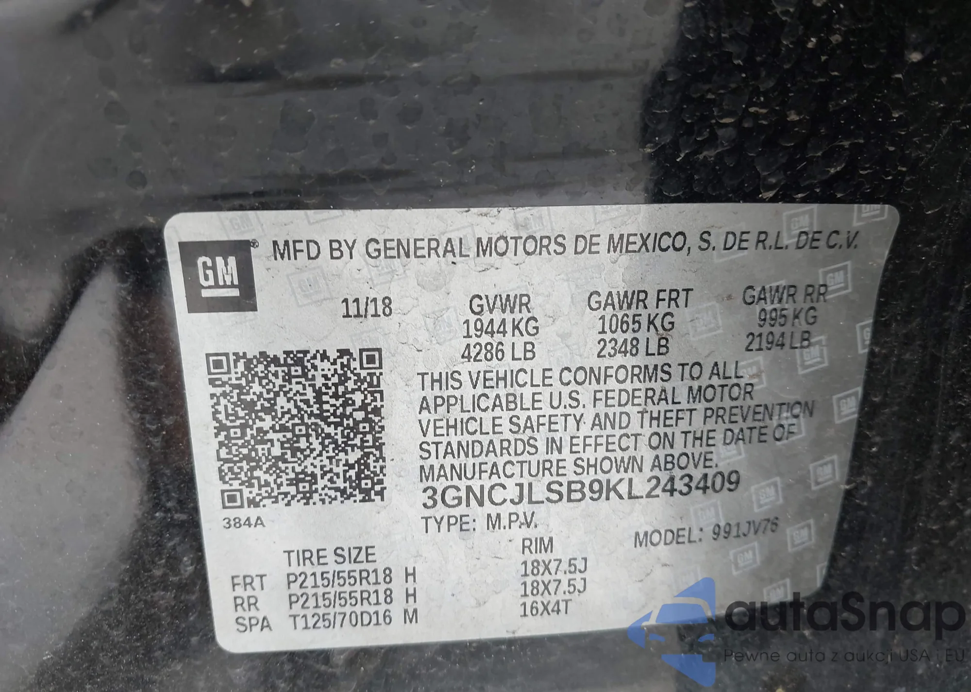 • VIN 3GNCJKSB2KL319157