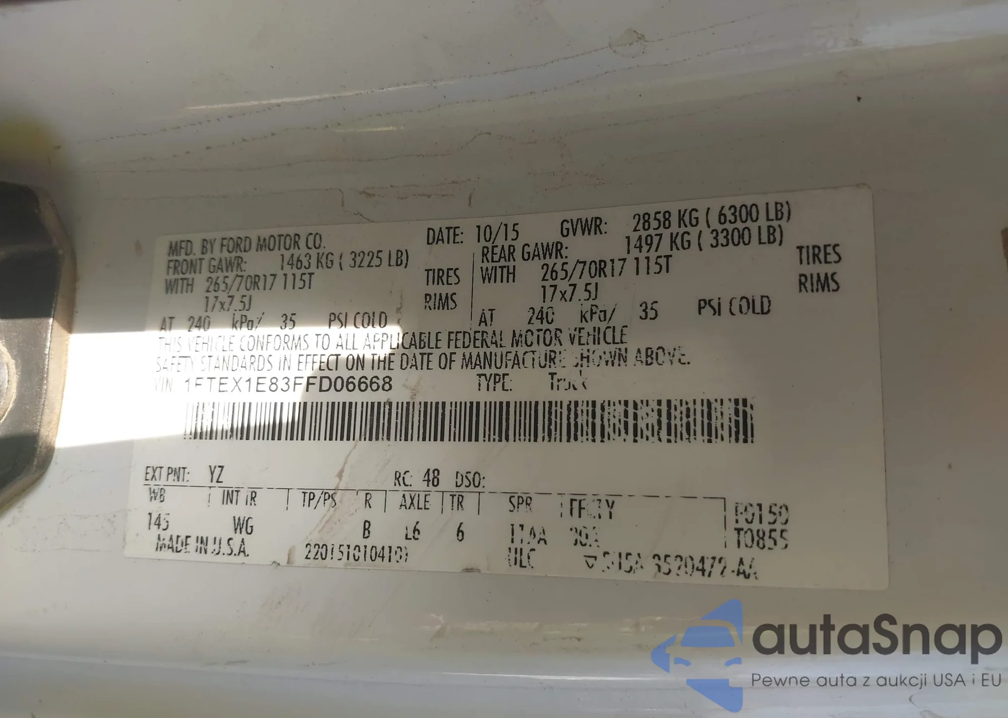 • VIN 1FTEX1E83FFD06668