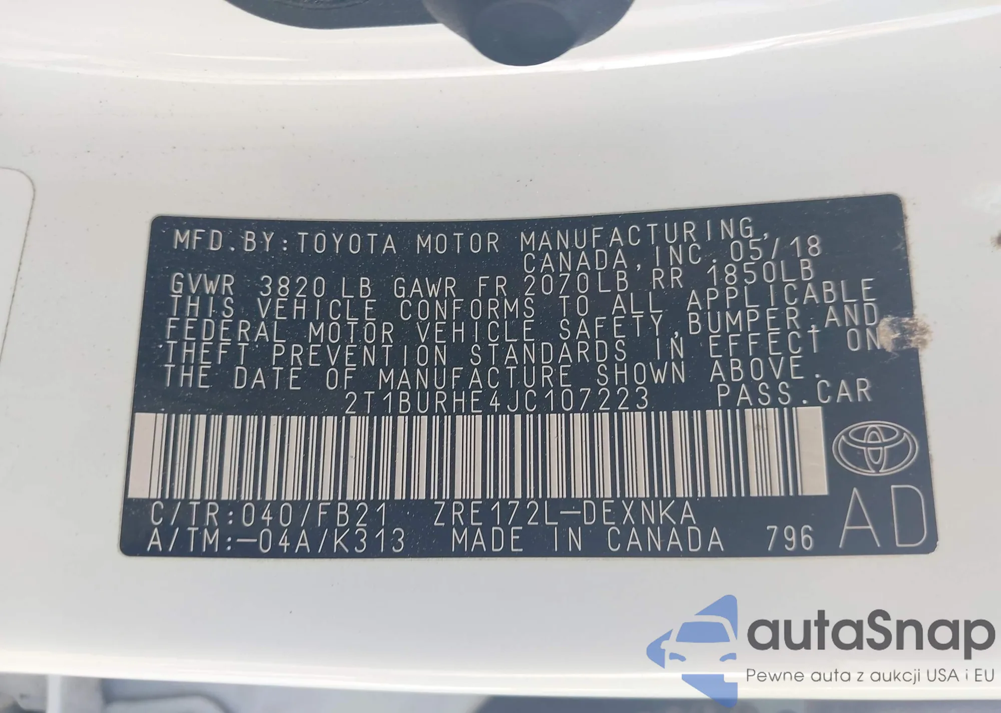 • VIN 2T1BURHE4JC107223