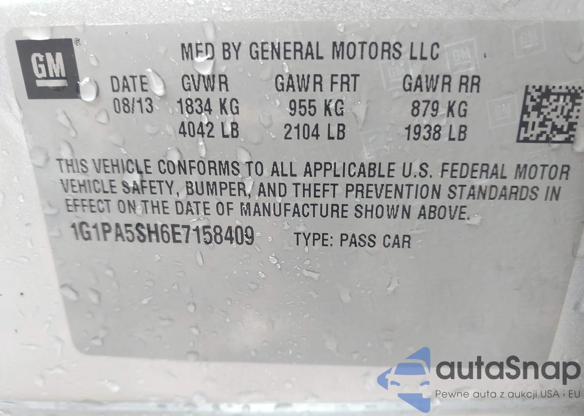 LOT: 43151237 VIN: 1G1PA5SH6E7158409