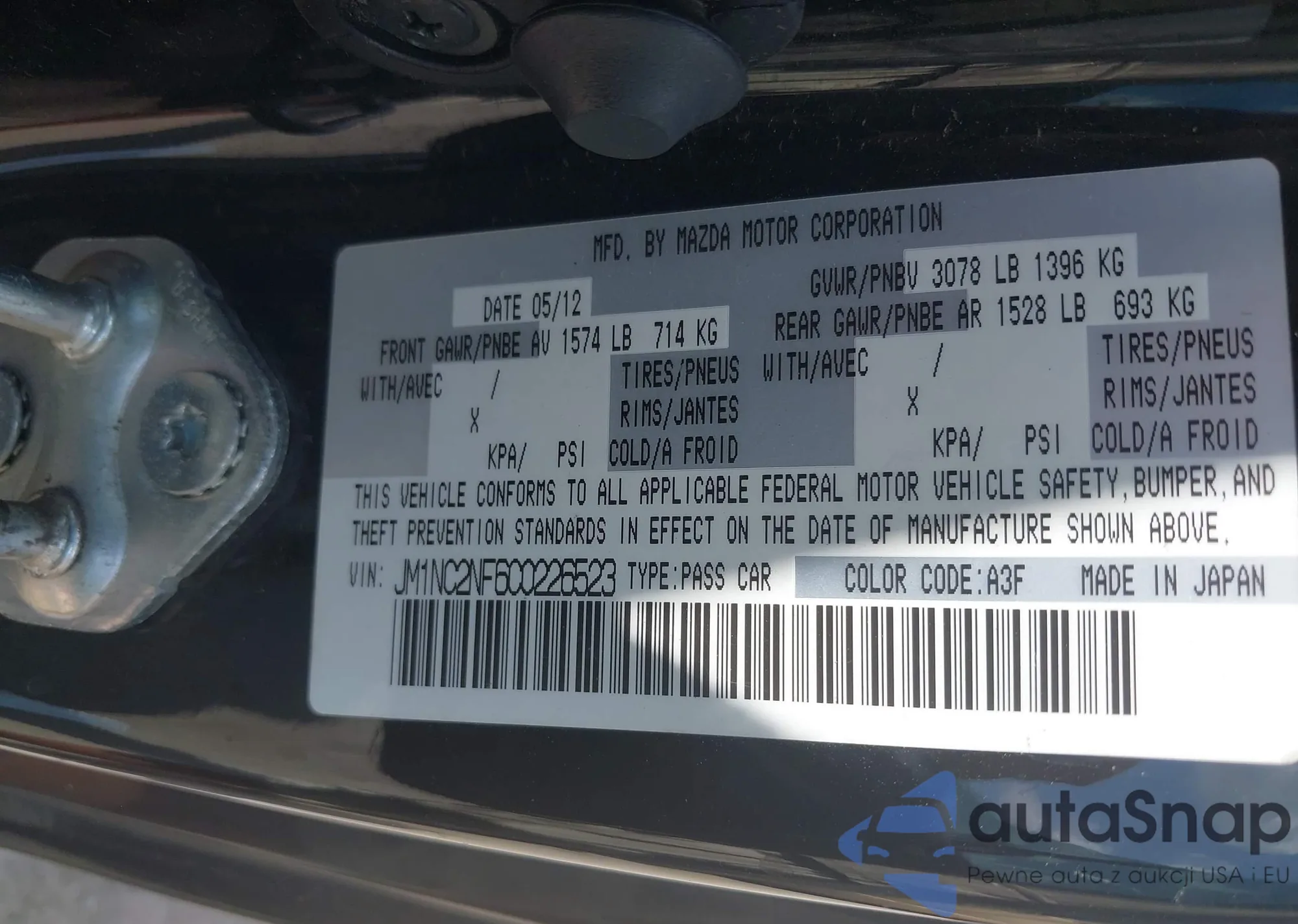 LOT: 42994106 VIN: JM1NC2NF6C0226523