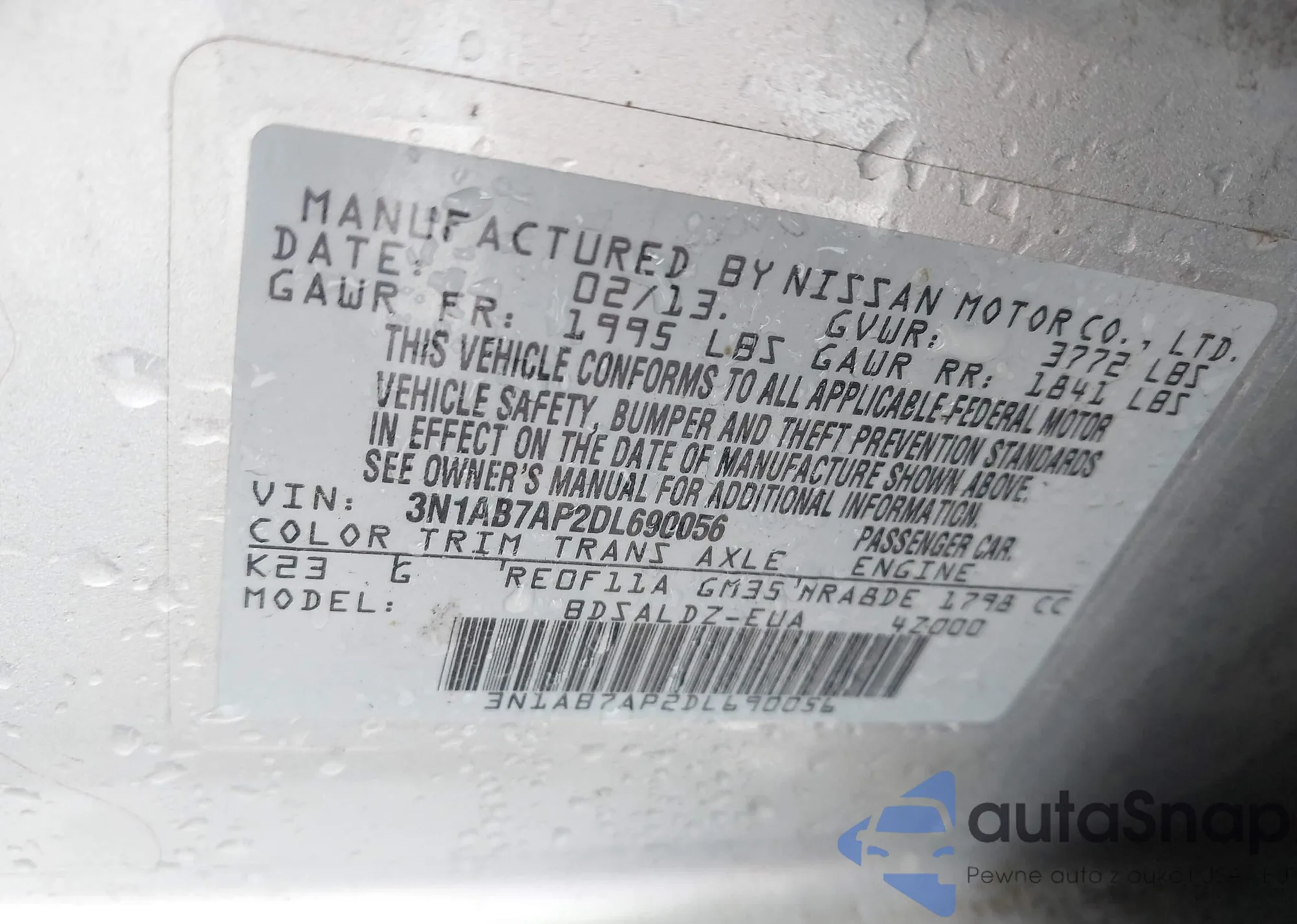 • VIN 3N1AB7AP2DL690056