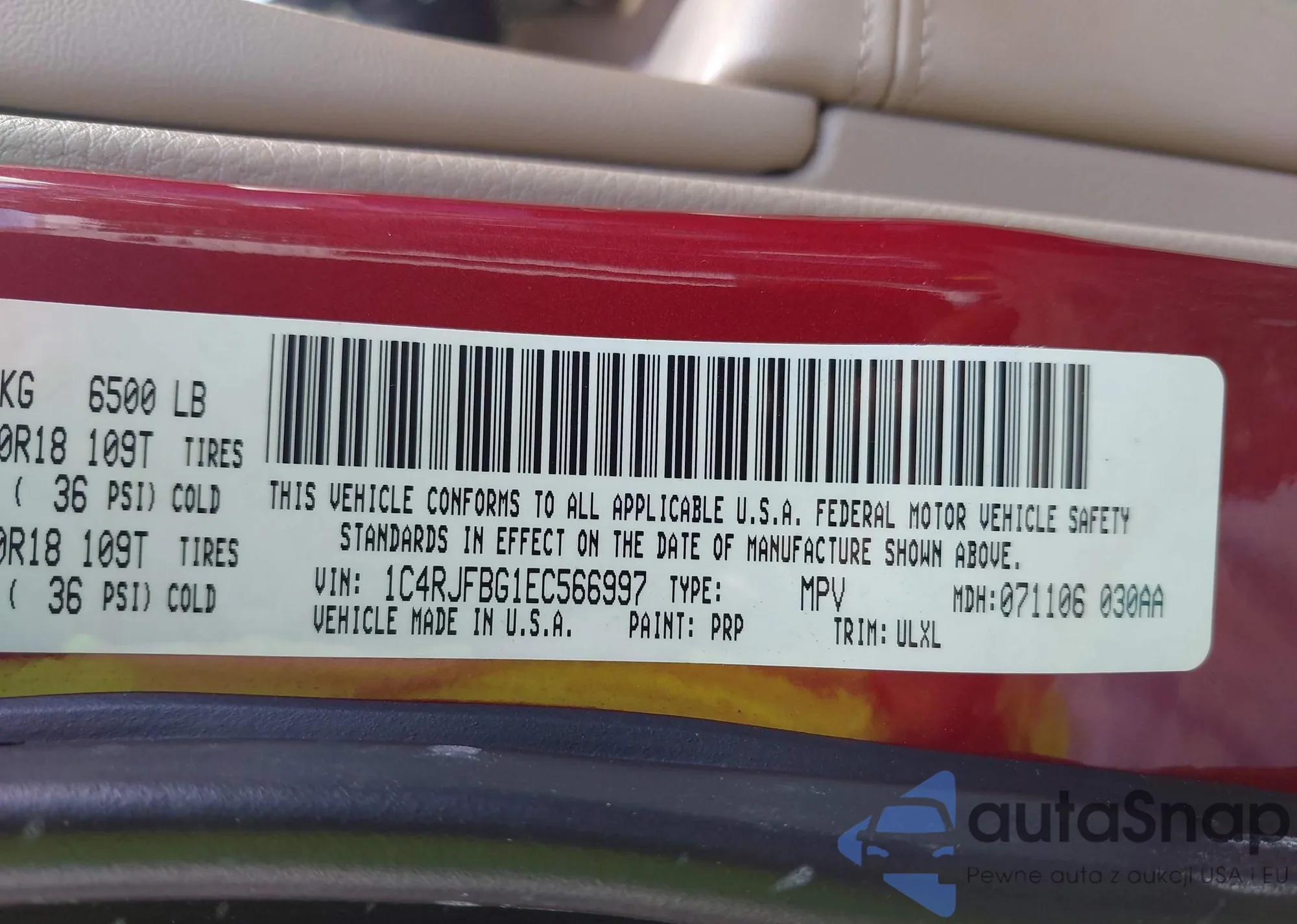 • VIN 1C4RJFBG1EC566997