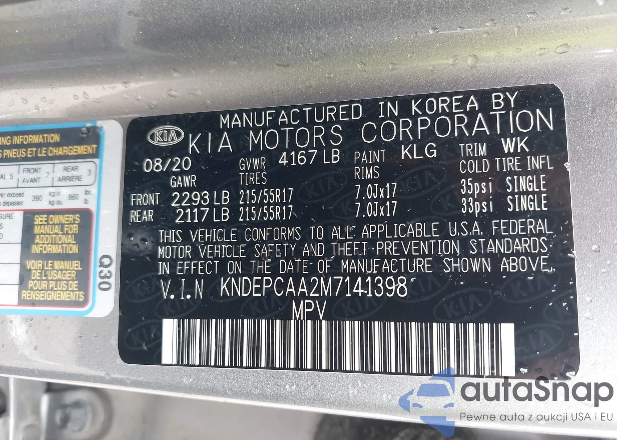 LOT: 43291734 VIN: KNDEPCAA2M7141398