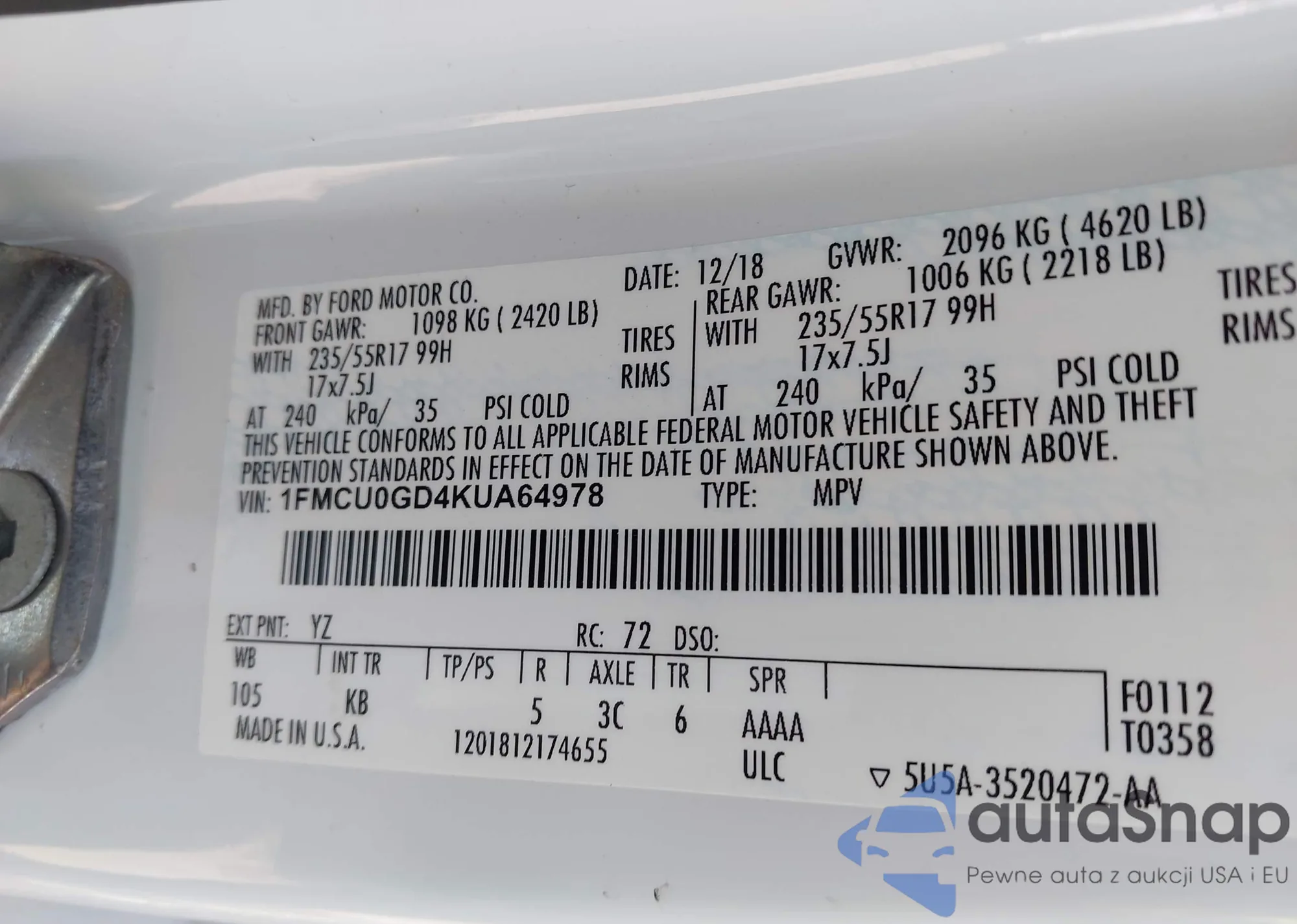 • VIN 1FMCU0GD4KUA64978