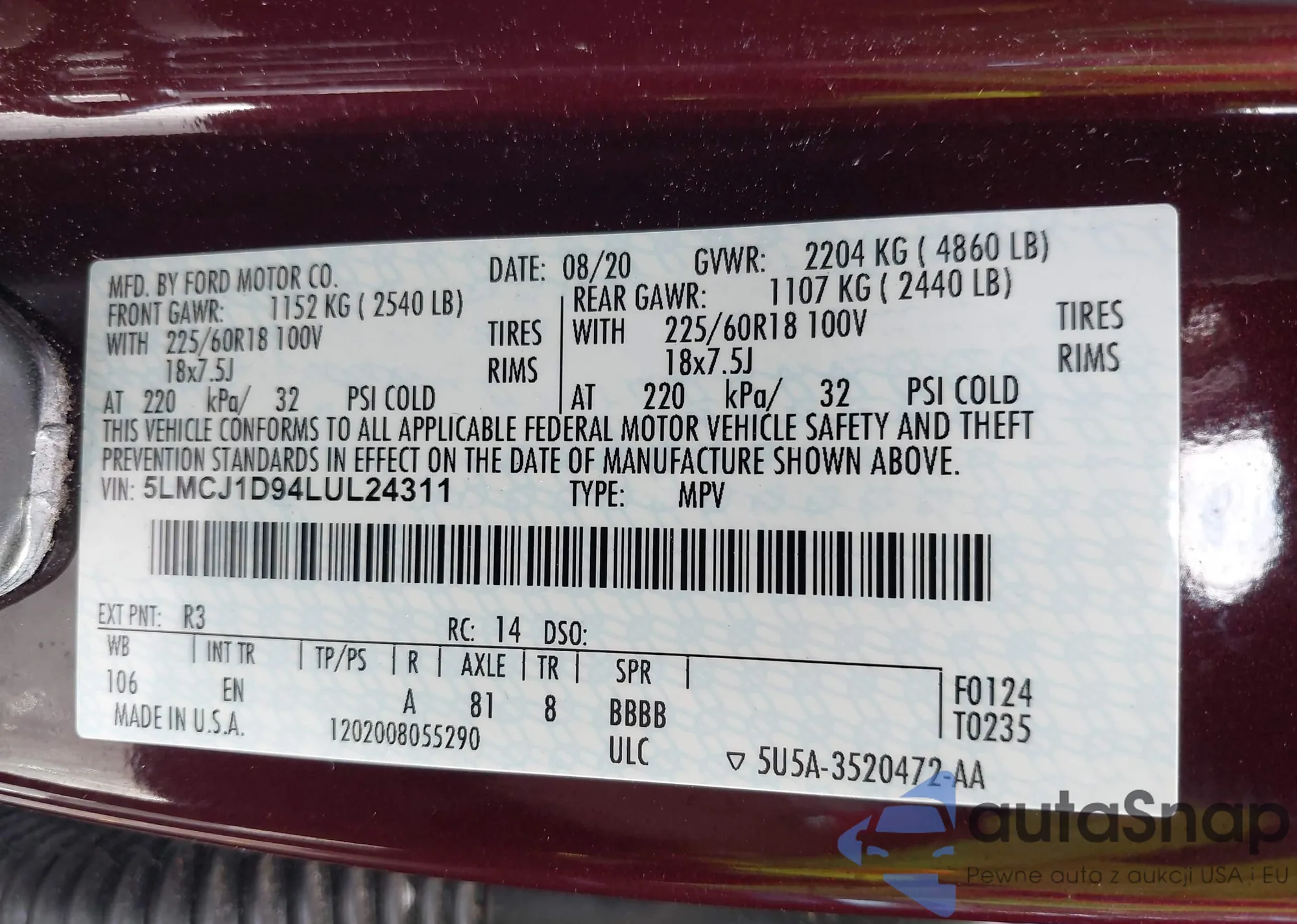 • VIN 5LMCJ1D94LUL24311