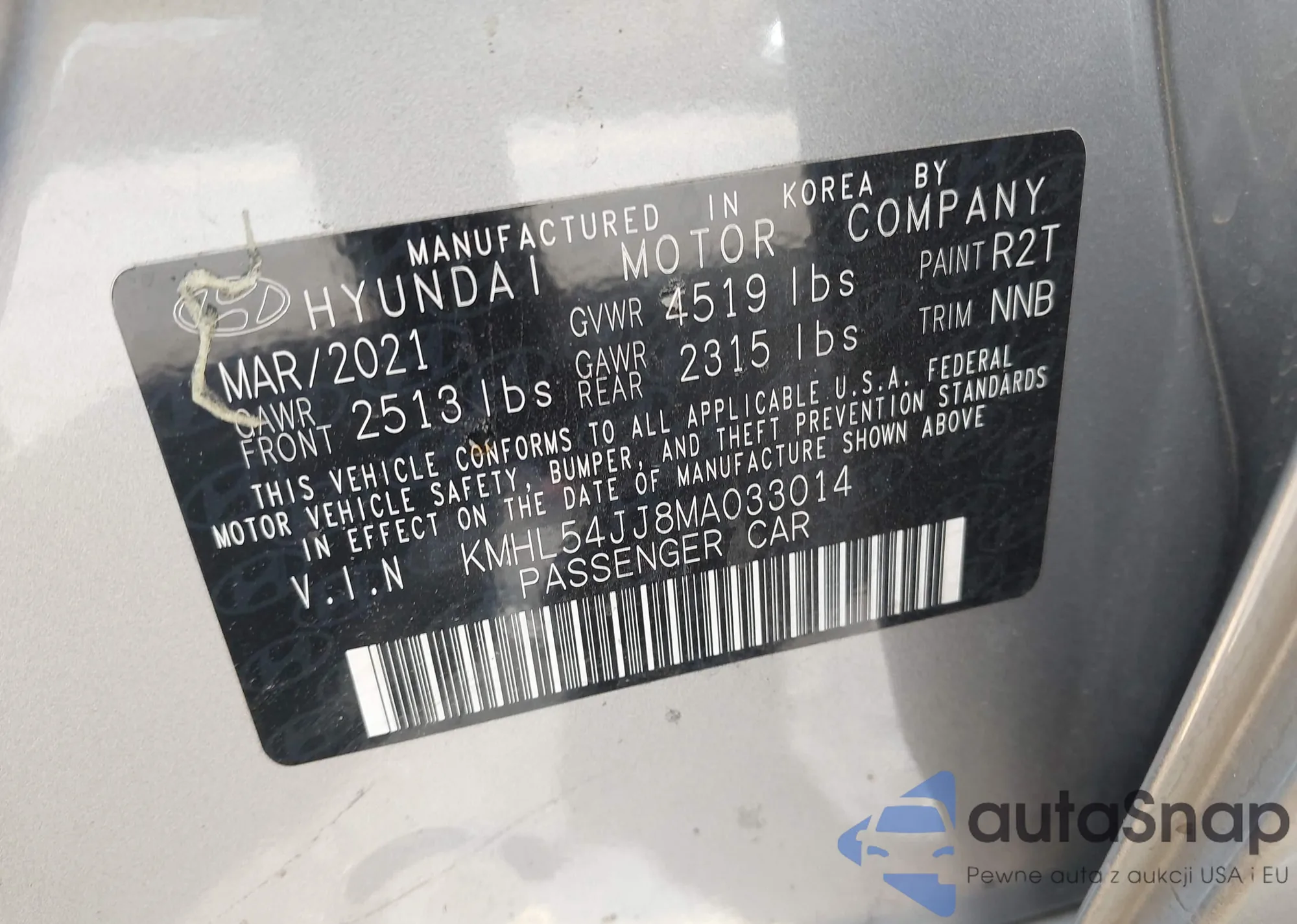 LOT: 43040756 VIN: KMHL54JJ8MA033014