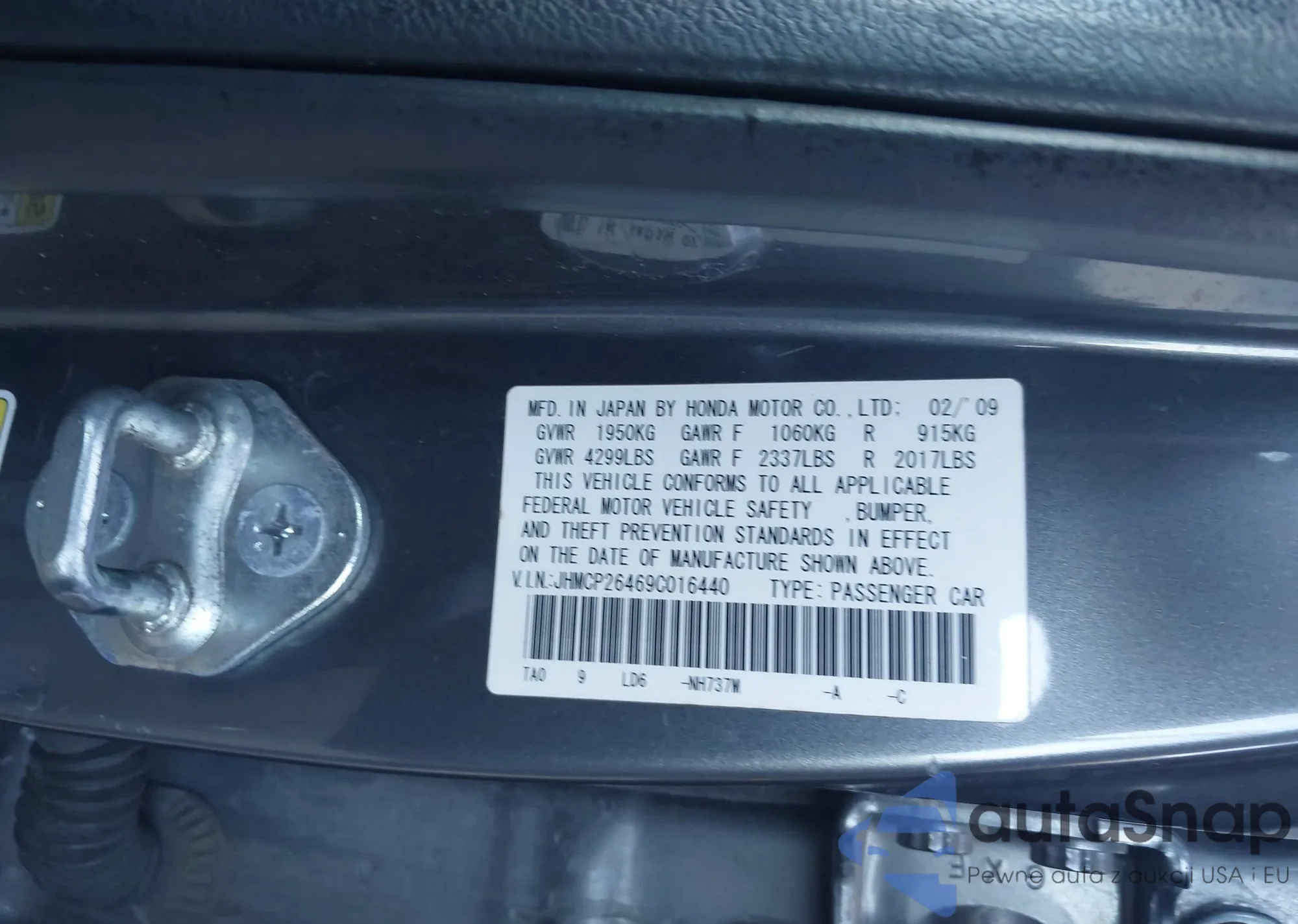 LOT: 43471428 VIN: JHMCP26469C016440