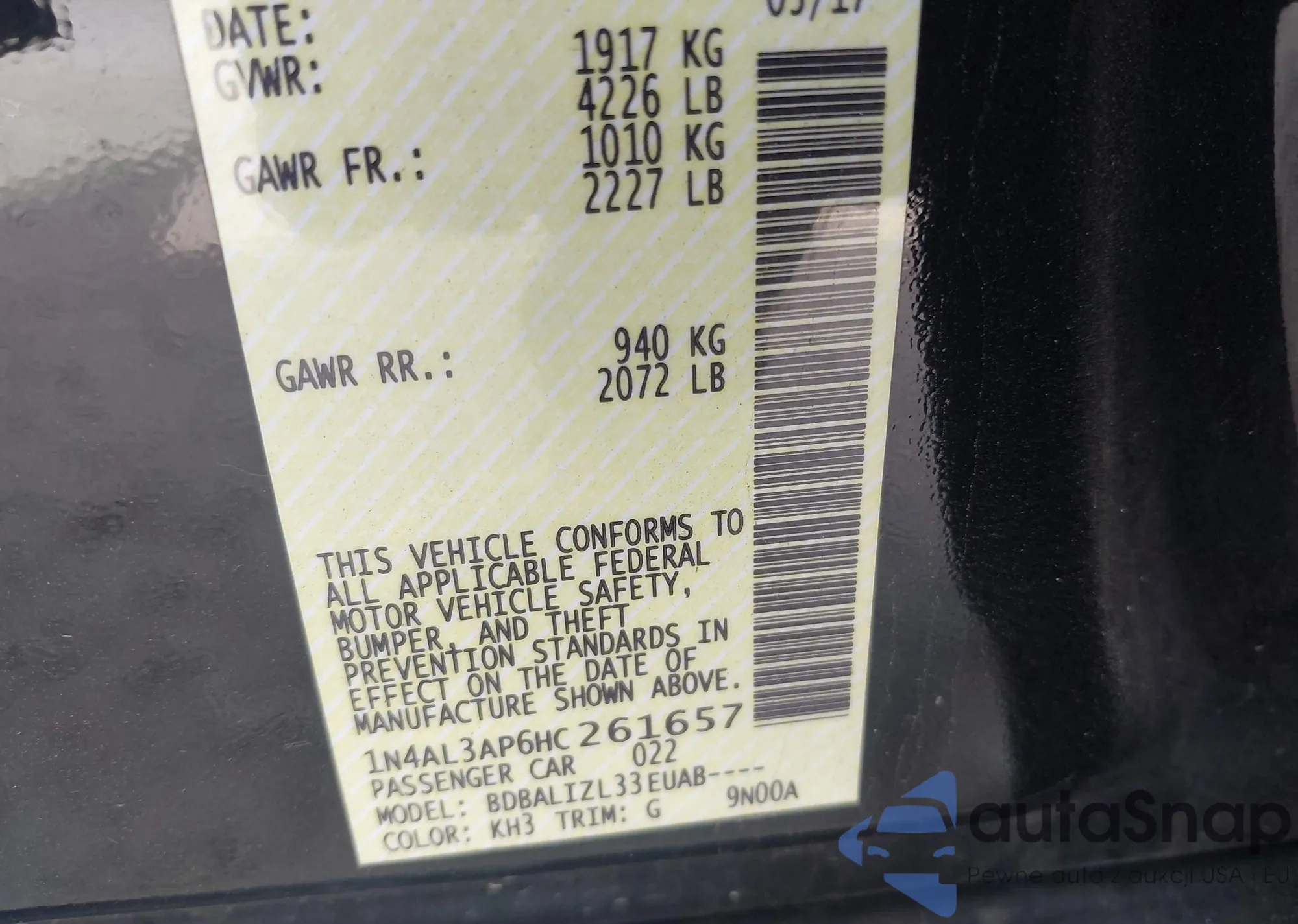 LOT: 43484404 VIN: 1N4AL3AP6HC261657