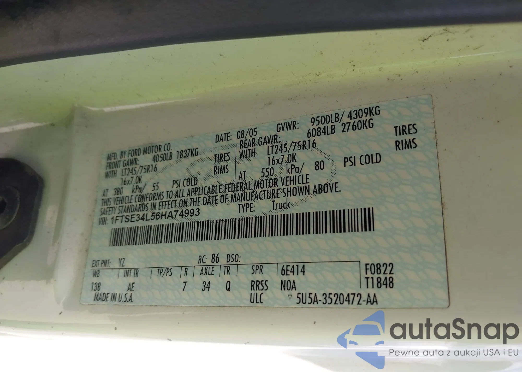 LOT: 43785990 VIN: 4T1BF12B8VU193845