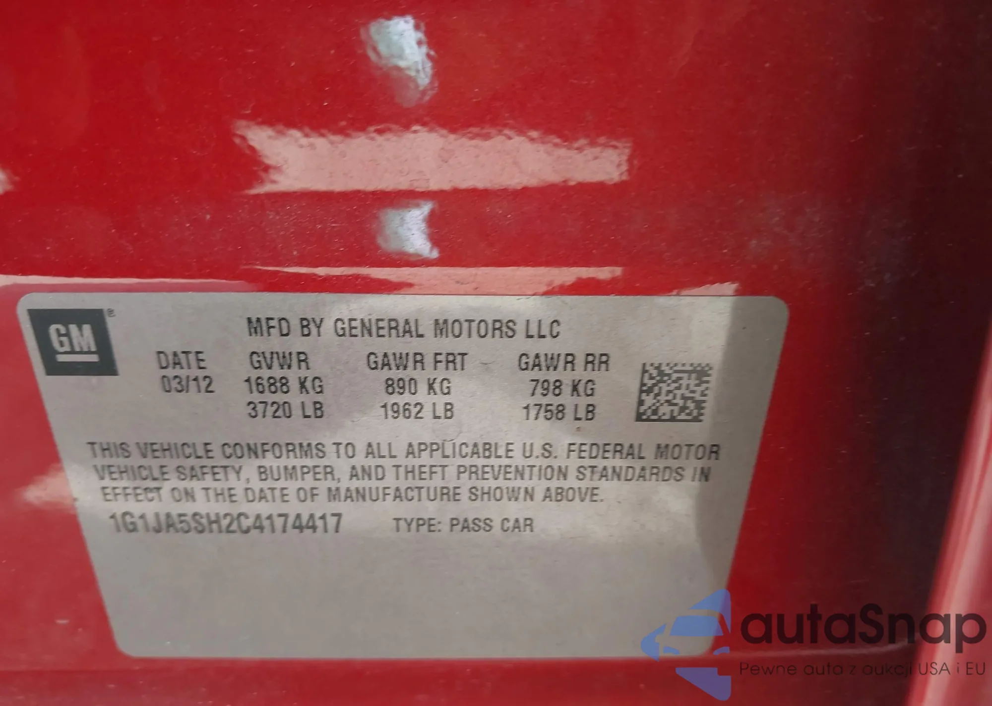 • VIN 1G1JA5SH2C1474417