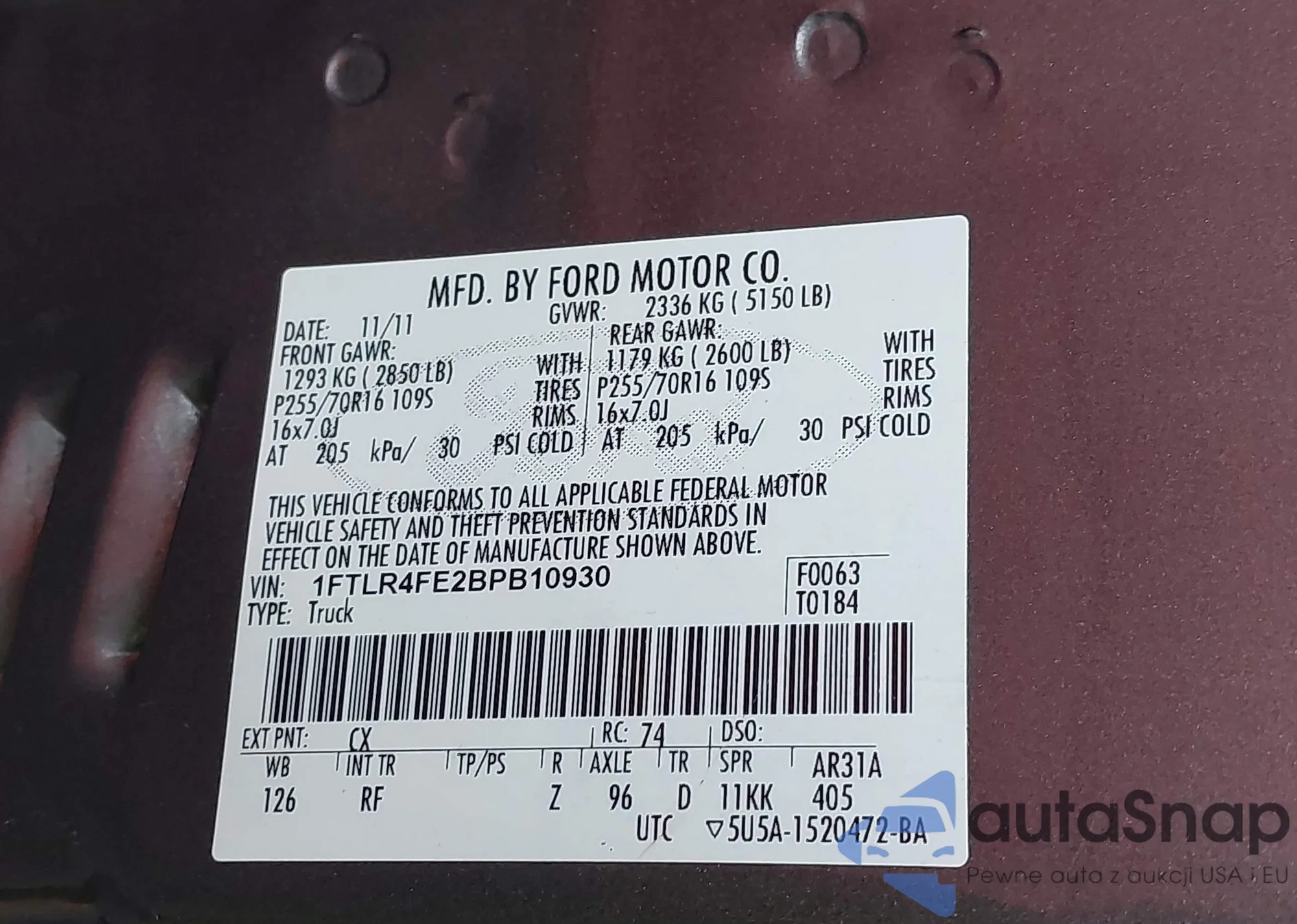 LOT: 43804847 VIN: WAUMFAFR2FA032556