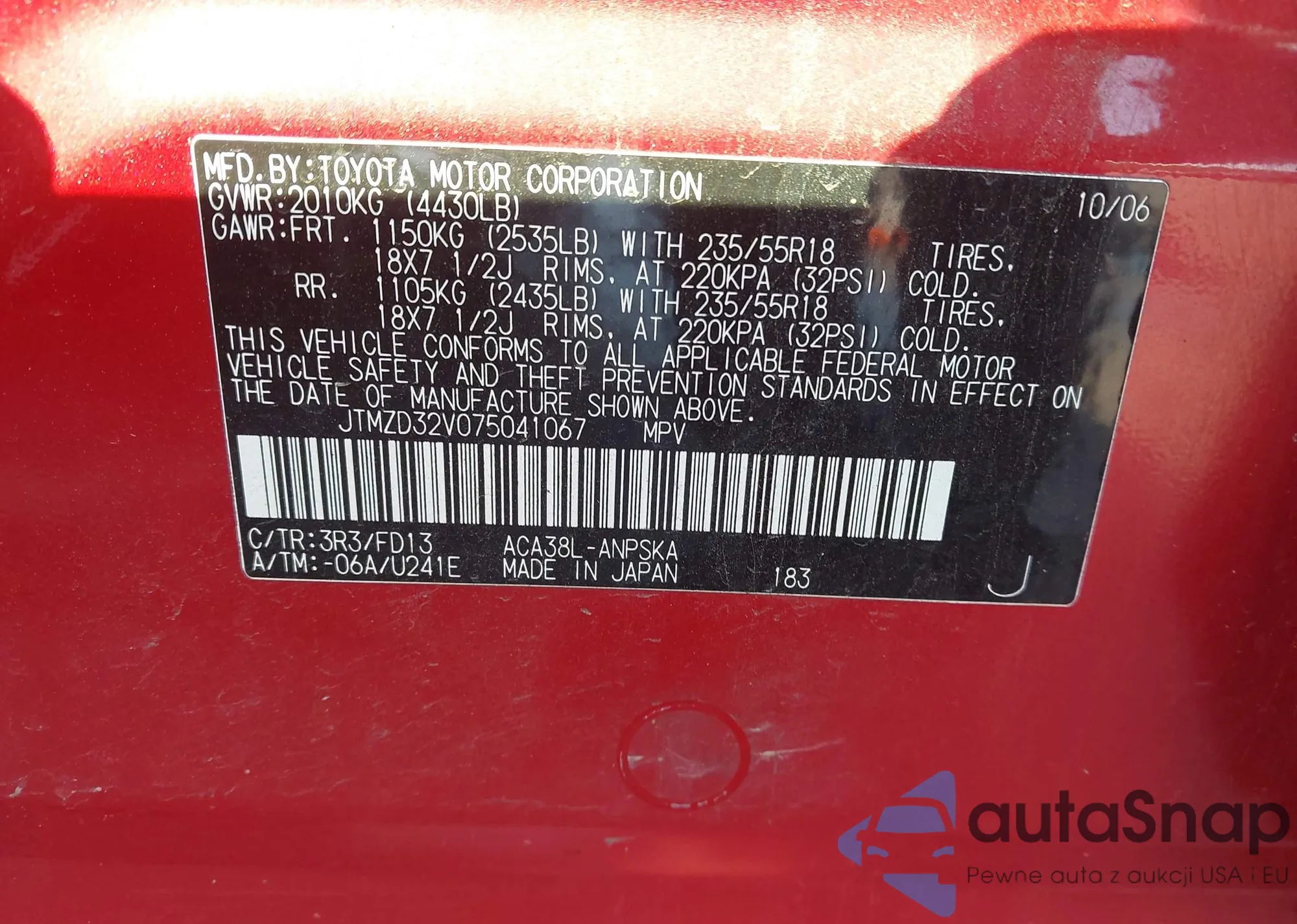 LOT: 43459461 VIN: JTMZD32V075041067