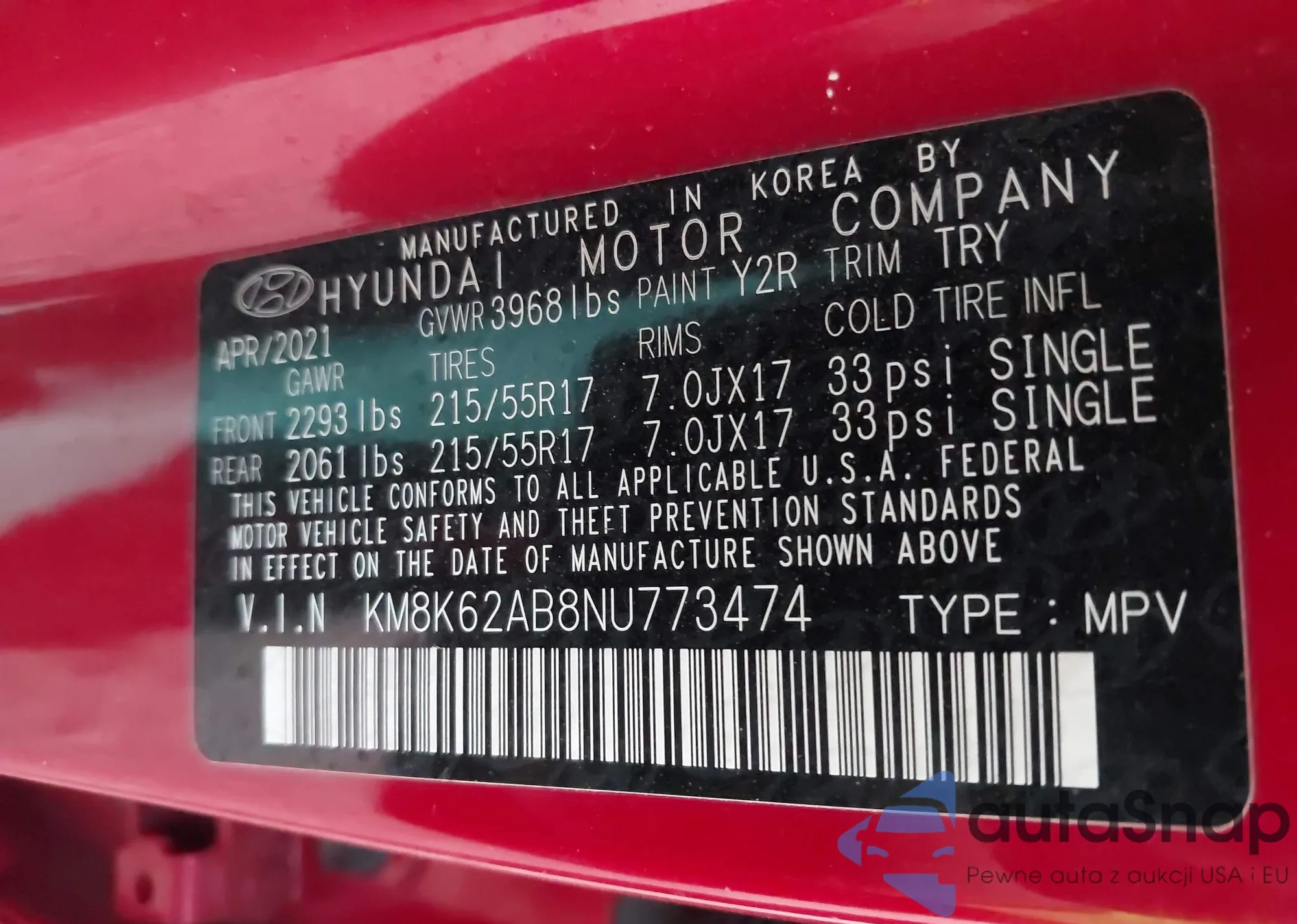 • VIN KM8K62AB8NU773474