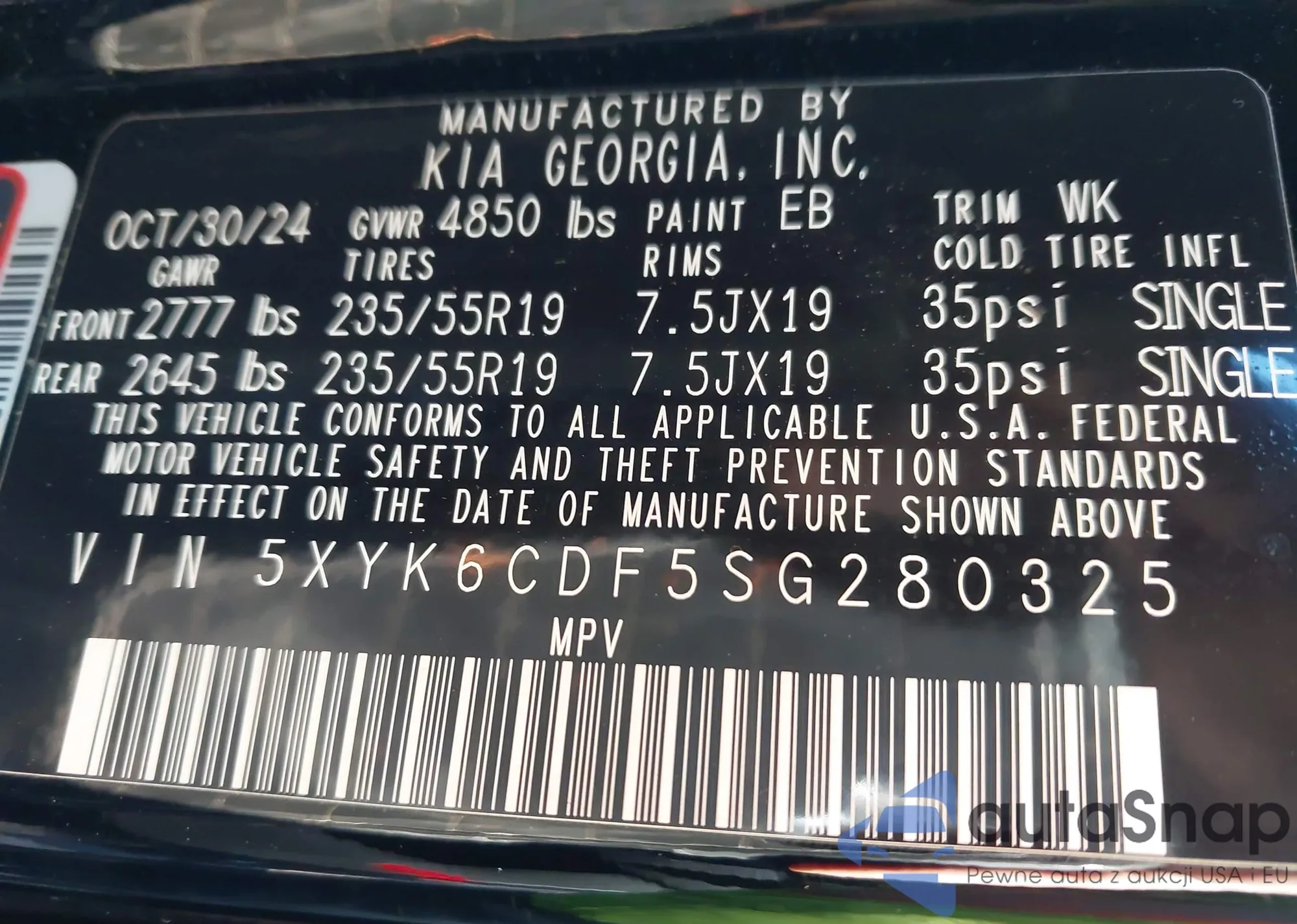 • VIN 5XYK6CDF5SG280325